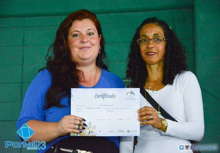 Além da entrega de certificados, teve ainda exposição de artesanato com os trabalhos produzidos pelos alunos, desfile de modelos das oficinas de corte de cabelo do Terra dos Ipês 1 e apresentação de balé com as alunas das oficinas dos bairros Cidade Jardim e Mombaça. O Programa Escola da Beleza também é parceiro do “Nosso Bairro” na iniciativa.