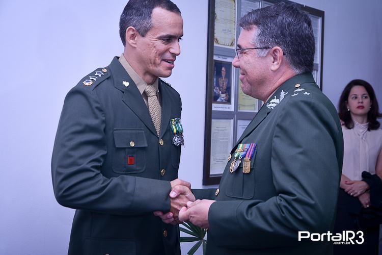 Major Vicente (esq.), novo comandante ao lado do ex-comandante, major Paiva.(Foto: Alex Santos/PortalR3)