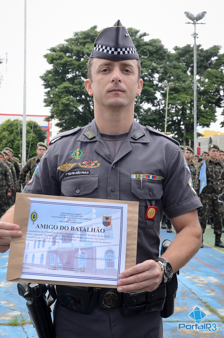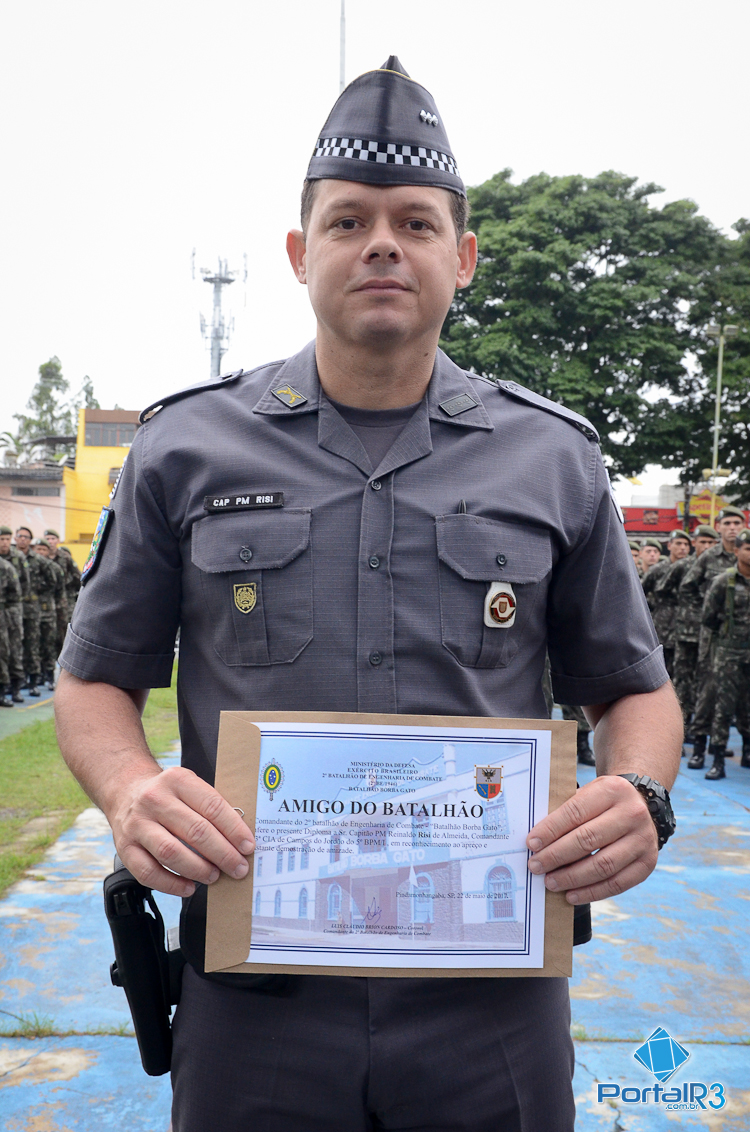 2º Batalhão de Engenharia de Combate “Batalhão Borba Gato”, homenageou policiais militares com diploma de Amigo do Batalhão em formatura realizada na manhã desta segunda-feira, dia 22 de maio.