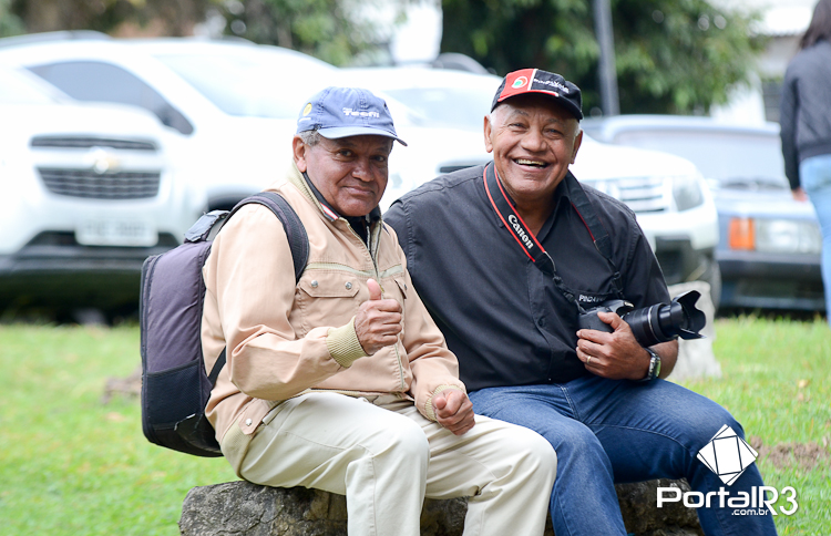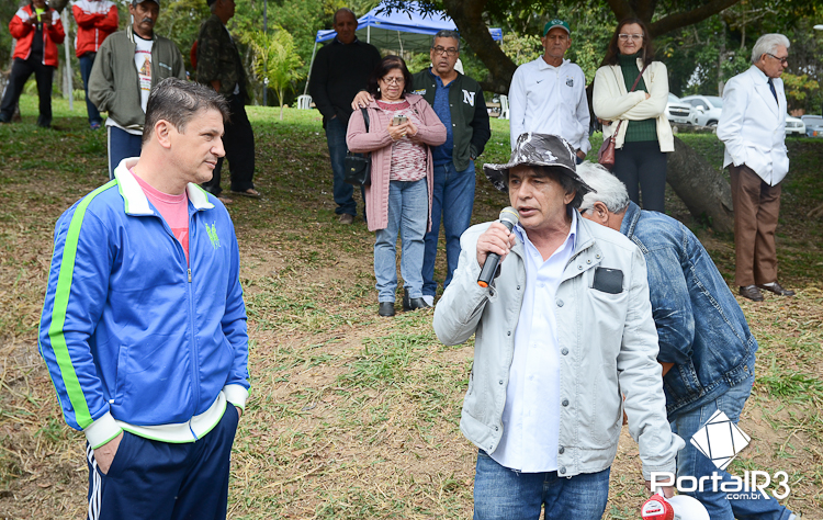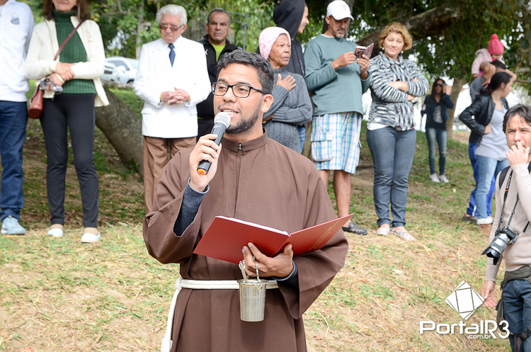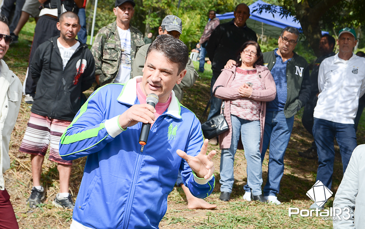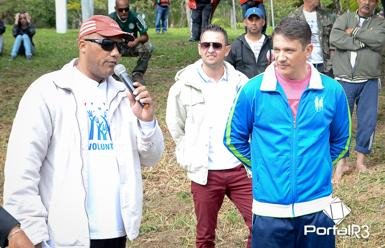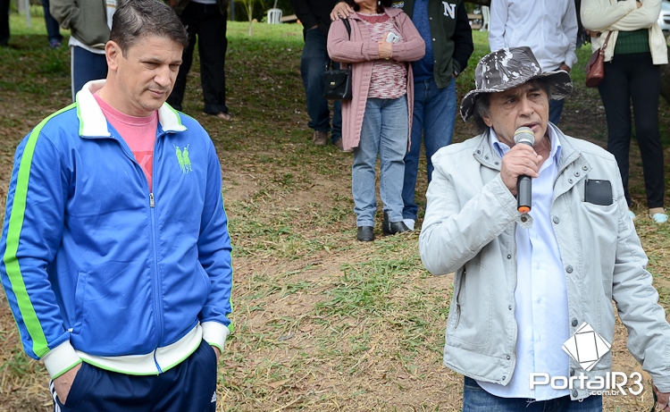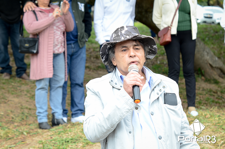 Ao lado do prefeito Isael Domingues (esquerda), João Paiva explica a importância da romaria e agradece a acolhida no Bosque da Princesa. (Foto: Luis Claudio Antunes/PortalR3)