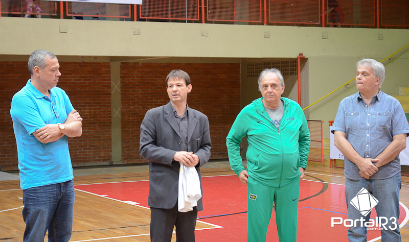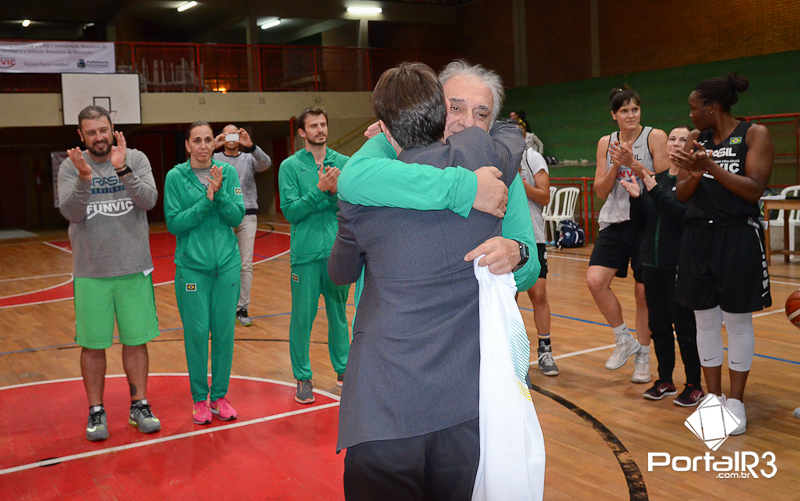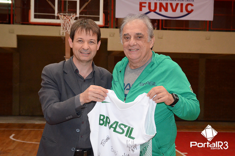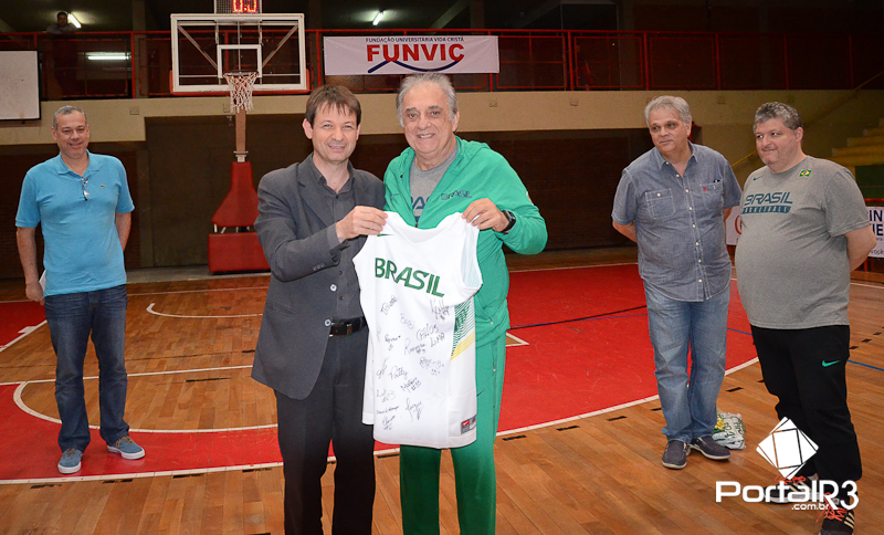 Luis Otávio recebeu uma camiseta da Seleção Brasileira das mãos do gerente esportivo da CBB, Antônio Carlos Barbosa. (Foto: Luis Claudio Antunes/PortalR3)