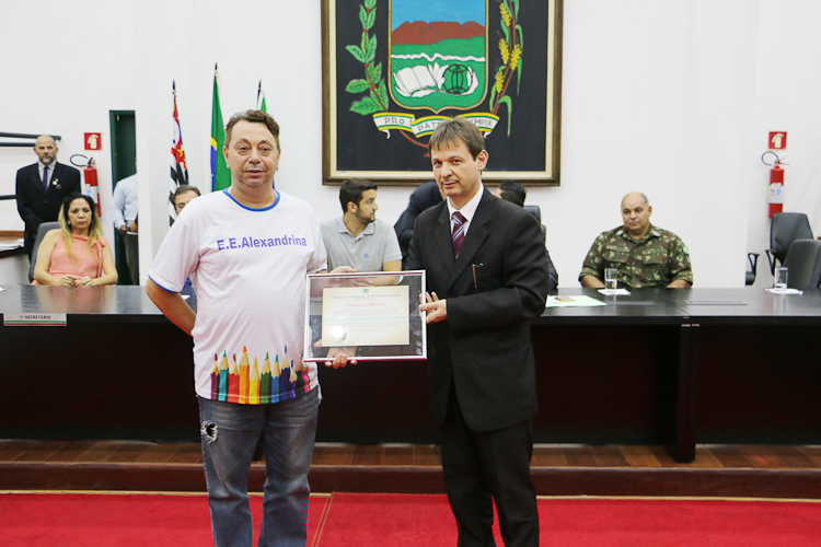 Foram agraciadas as seguintes entidades: Escola Estadual Professora Alexandrina Gomes de Araújo Rodrigues, através do gestor Ricardo de Carvalho; Escola Estadual Dirce Aparecida Pereira Marcondes, pela gestora Ivana Maria Alvarenga Monteiro; Escola Estadual Professora Eunice Bueno Romeiro, representada pela gestora Laura Lúcia de Oliveira Santos; Escola Municipal Professor Paulo Freire, recebida pela gestora Fabíola Queiroz e a Escola Municipal Professora Odete Corrêa Madureira, com a gestora Solange Arantes Corrêa Madureira.