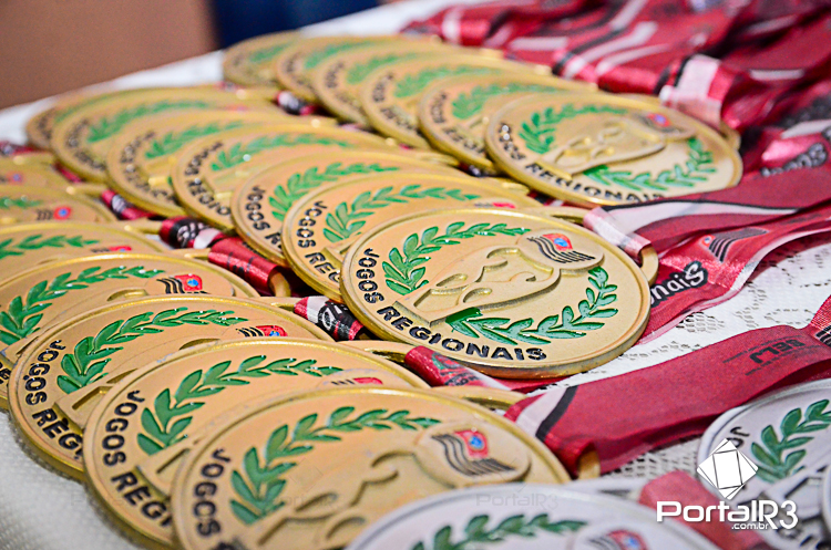 Entrega de medalhas aos atletas dos Jogos Regionais 2017. (Foto: Luis Claudio Antunes/PortalR3)