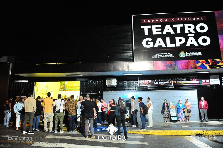 Espetáculo “A Dócil” teve início ainda do lado de fora do Teatro Galpão. (Foto: Luis Claudio Antunes/PortalR3)