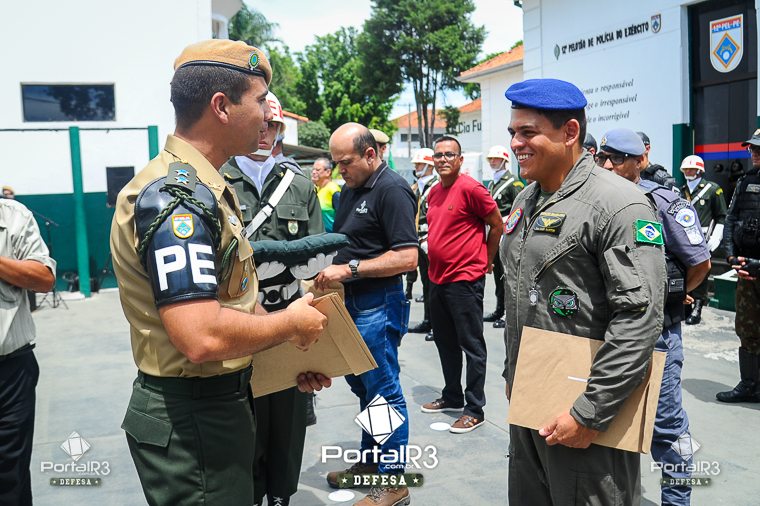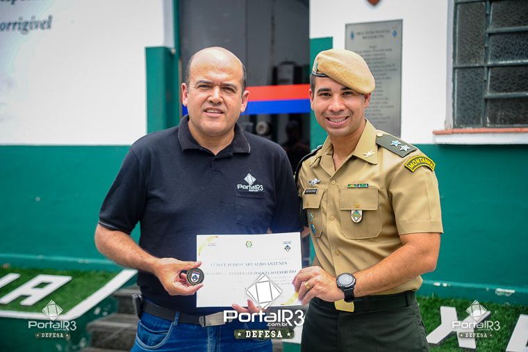 O jornalista e diretor do PortalR3, Luis Claudio Antunes, foi um dos homenageados na cerimônia e recebeu das mãos do tenente Arthur Lourenço Amaral Albuquerque, comandante do 12º Pel PE, o diploma e a medalha.