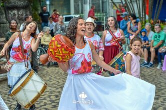 Galeria com fotos do Encontro de Grupos Folclóricos 2023 realizado no domingo (8), em frente ao presépio na Gruta da Cascata que fica na Praça Monsenhor Marcondes, na região central de Pindamonhangaba.
