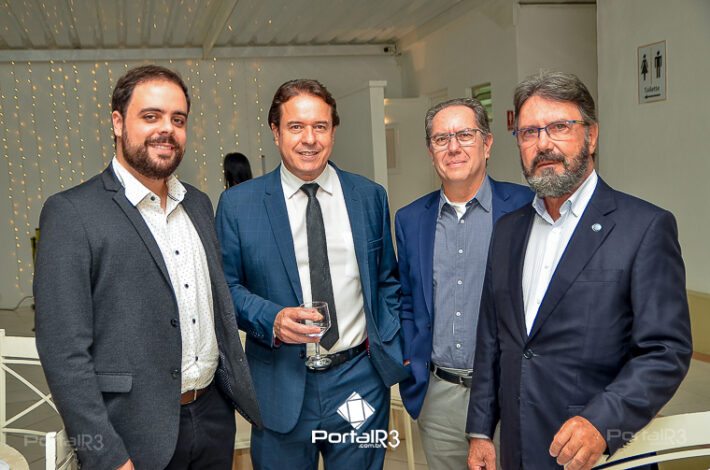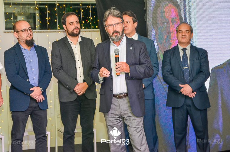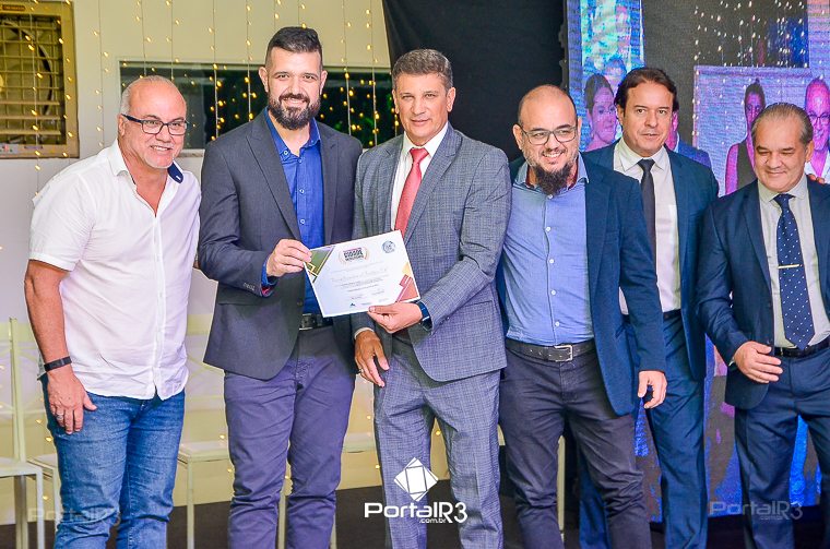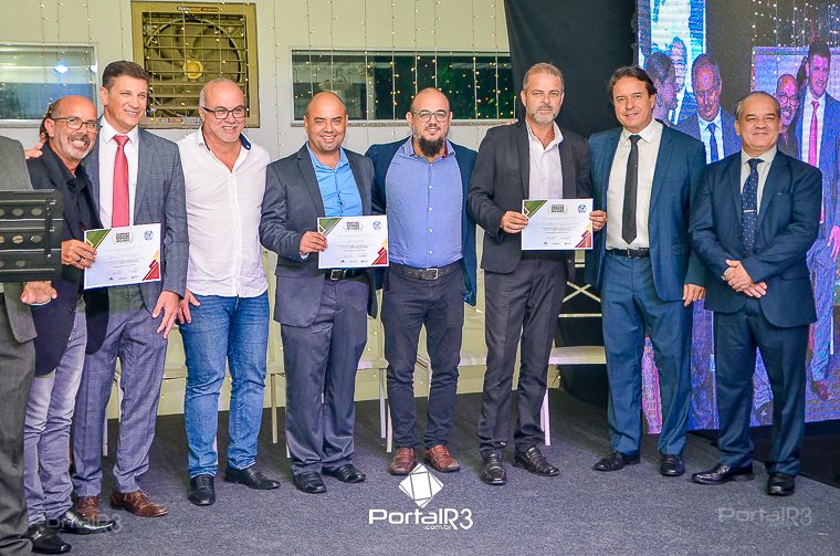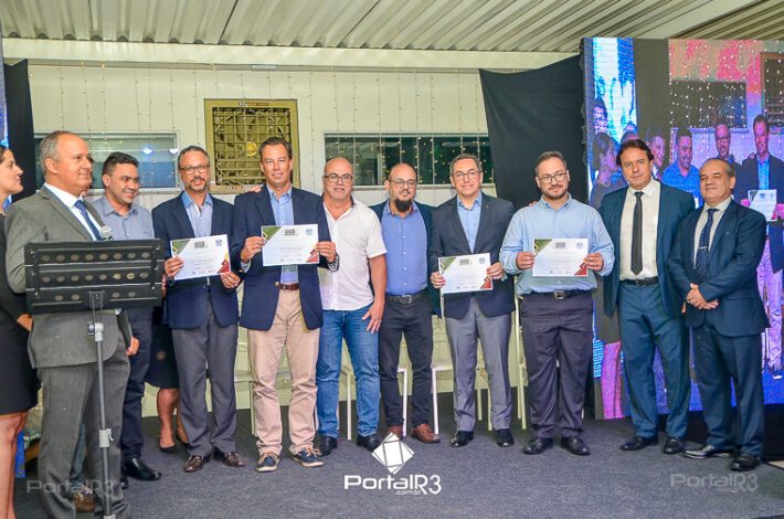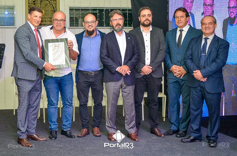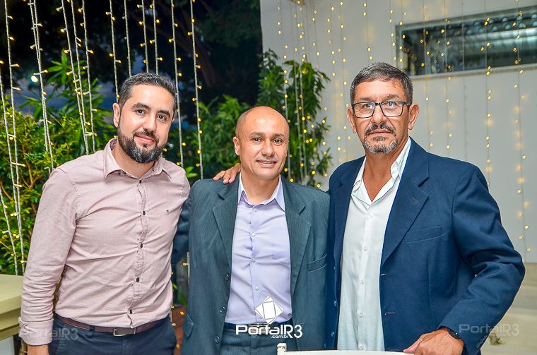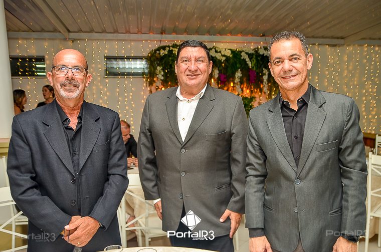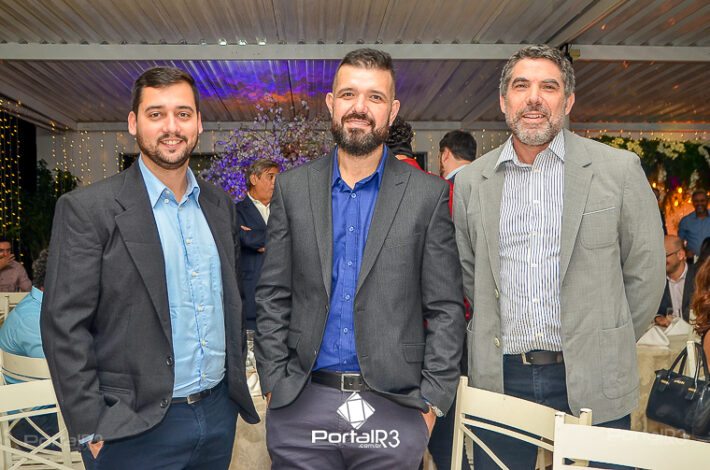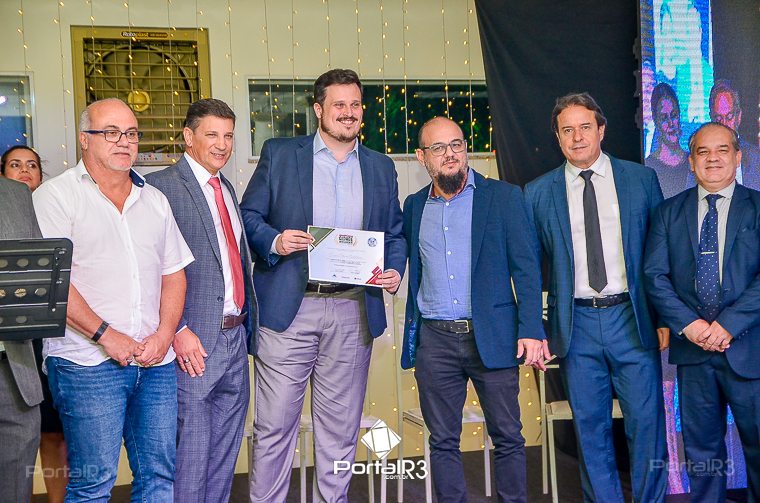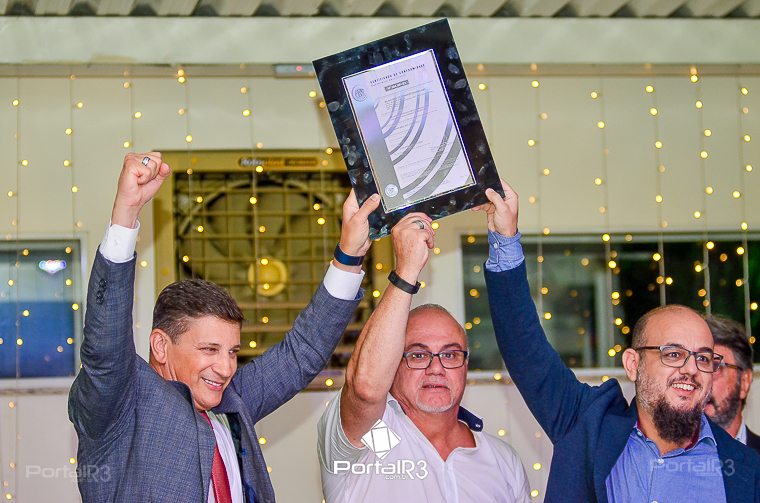 O prefeito Isael Domingues, o vice, Ricardo Piorino e o secretário Danilo Velloso comemorando o recebimento da certificação. (Foto: Allan Modesto | PortalR3]