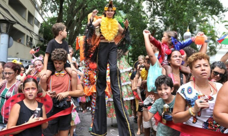 Por isso, cenas como vovôs pulando com os netos ou mães amamentando os filhos são comuns e destoam do estilo de outros blocos populares do Rio. Mas o repertório do Gigantes não fica restrito às músicas infantis. Os tradicionais sambas e marchinhas de Carnaval embalaram o público em Laranjeiras até o início da tarde.