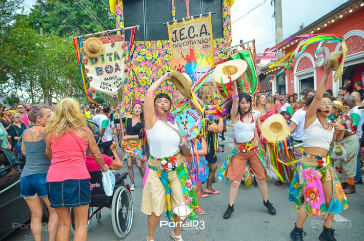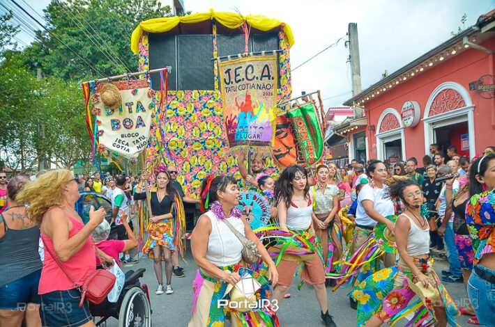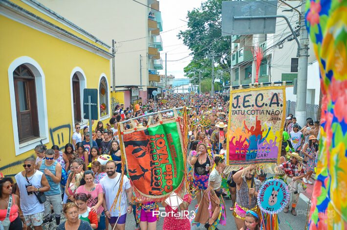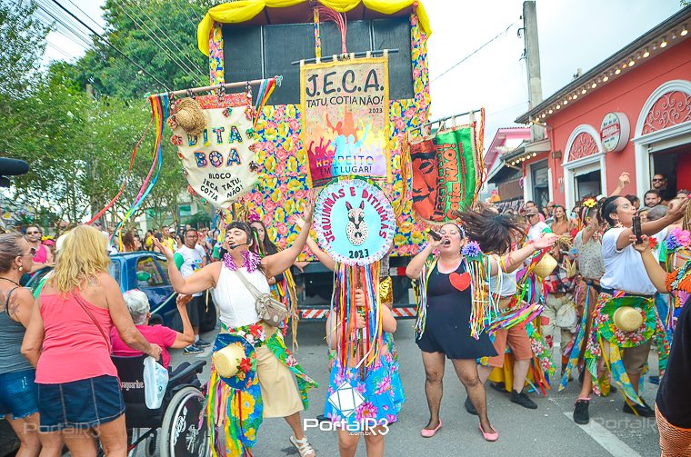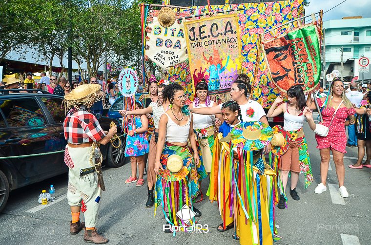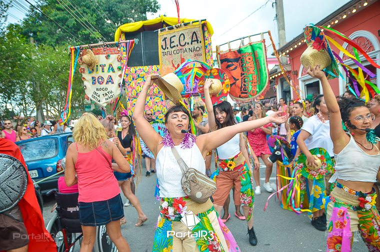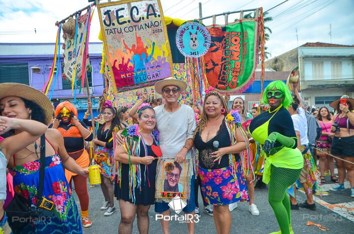 Bloco Jeca Tatu Cotia Não no Carnaval 2023 de Pindamonhangaba. [Foto: Allan Modesto | PortalR3]