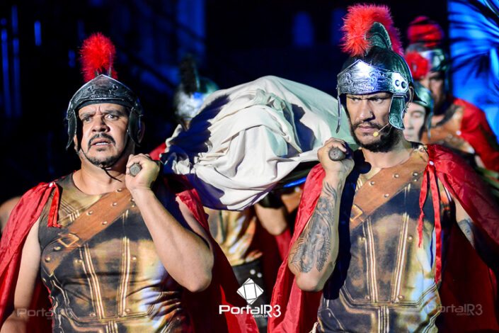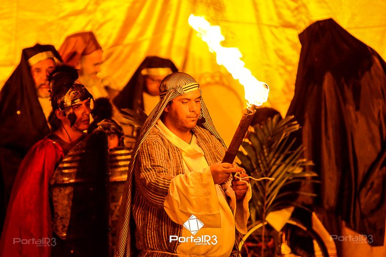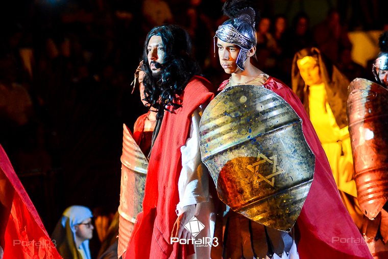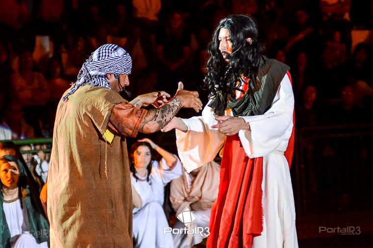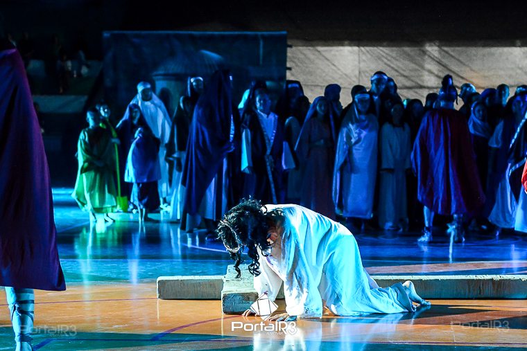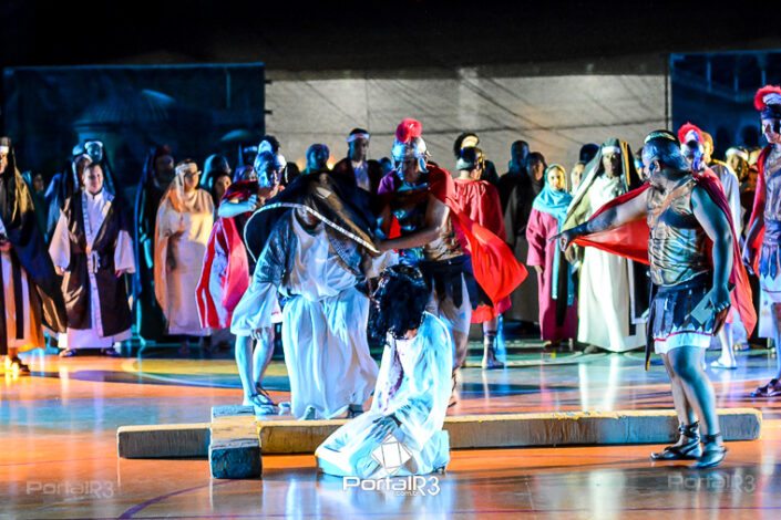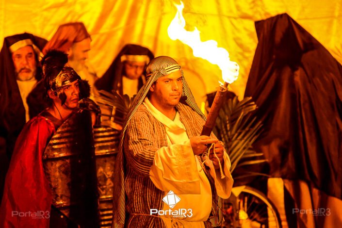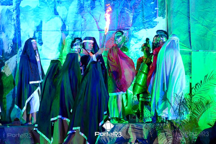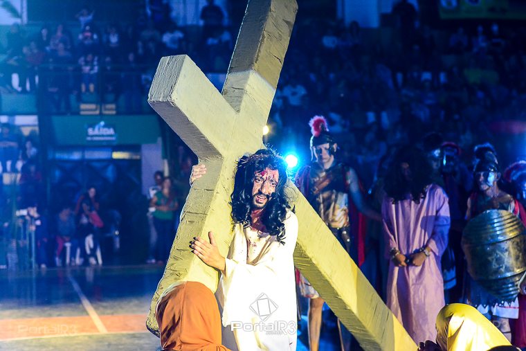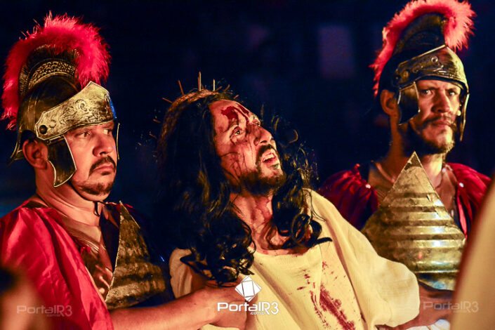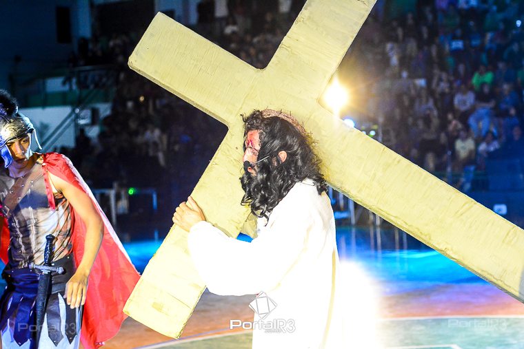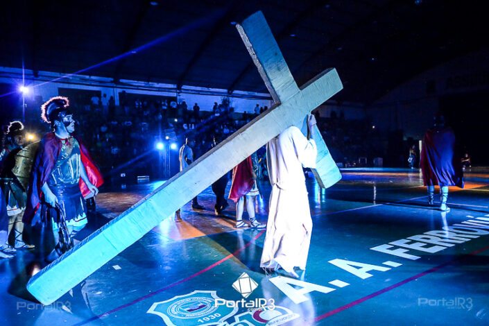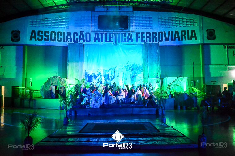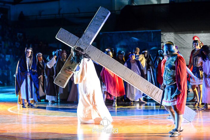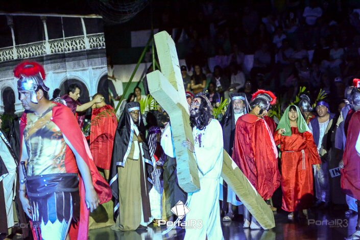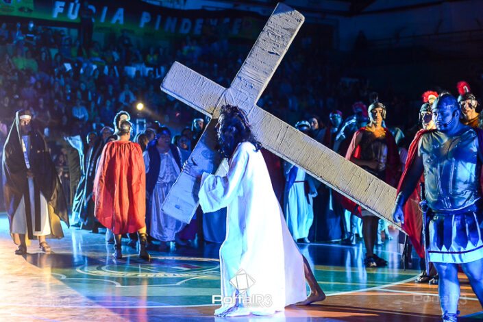 Encenação da Paixão e Morte de Cristo na Ferroviária. [Foto: Allan Modesto | PortalR3]Galeria com fotos da Encenação da Paixão e Morte de Cristo realizado pela Comunidade Aliança Jesus Agora (CAJA) na Sexta-feira Santa, no ginásio da Associação Atlética Ferroviária, em Pindamonhangaba. Cerca de 120 pessoas participaram como ator, figurante e apoio técnico no espetáculo que retrata as principais cenas da Paixão de Jesus Cristo. O evento contou com apoio da Ferroviária e da prefeitura de Pindamonhangaba.