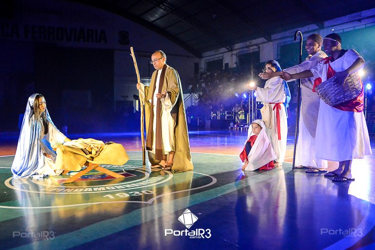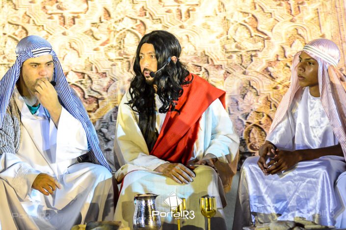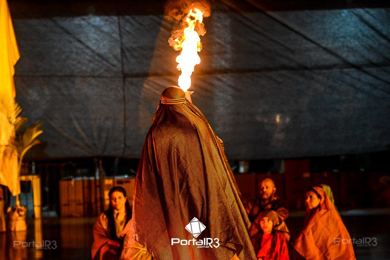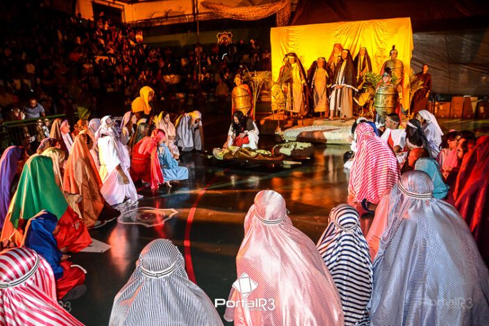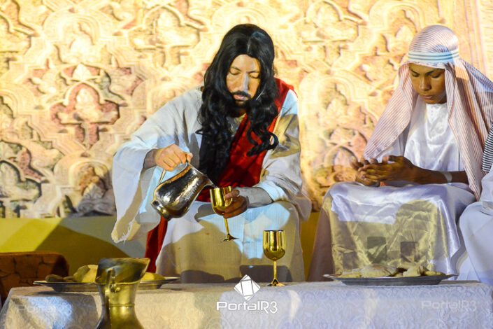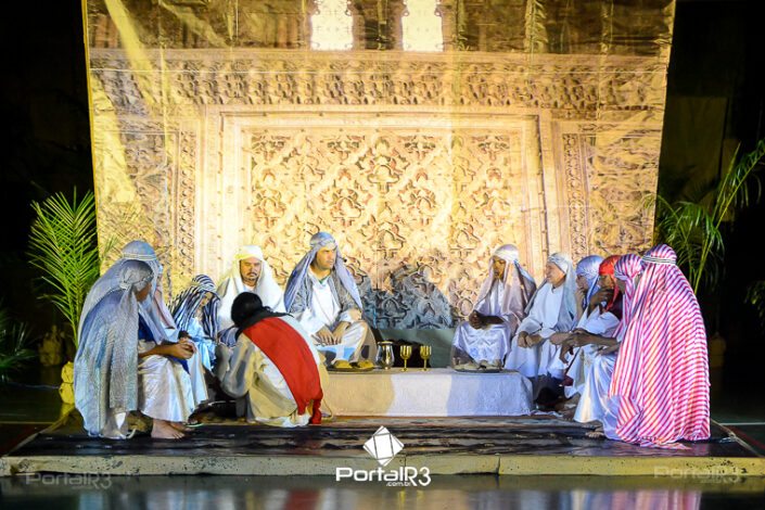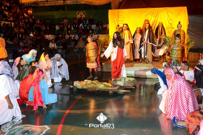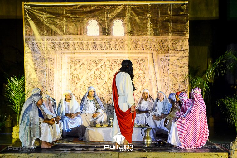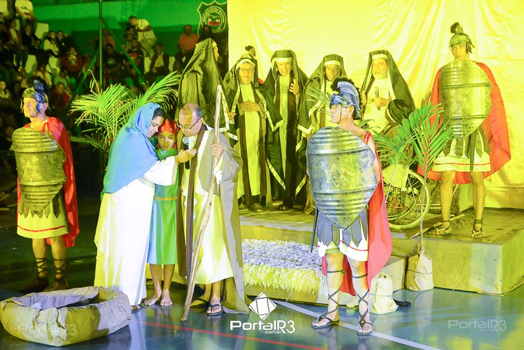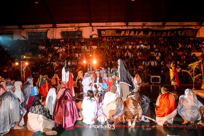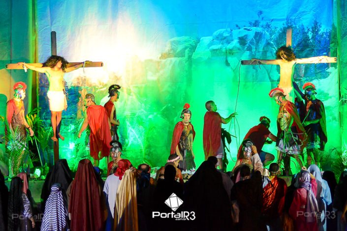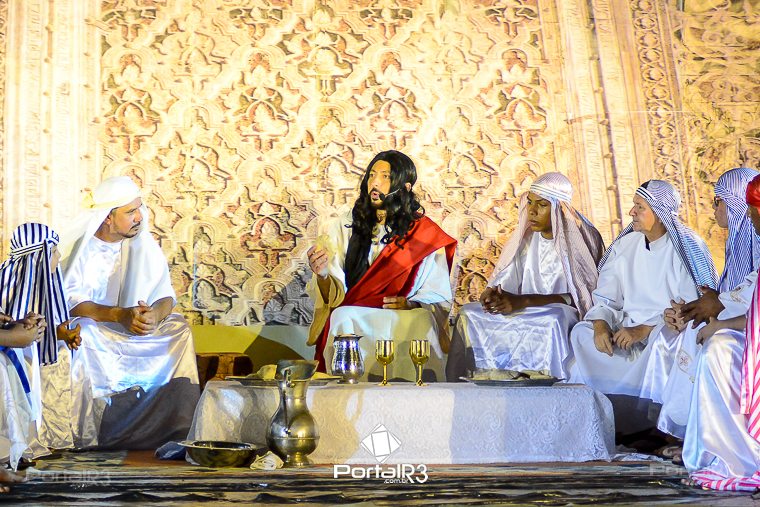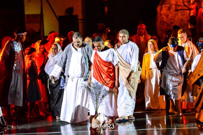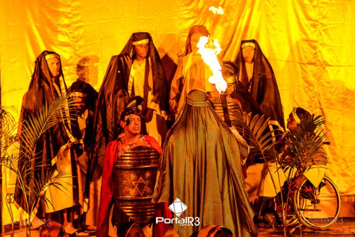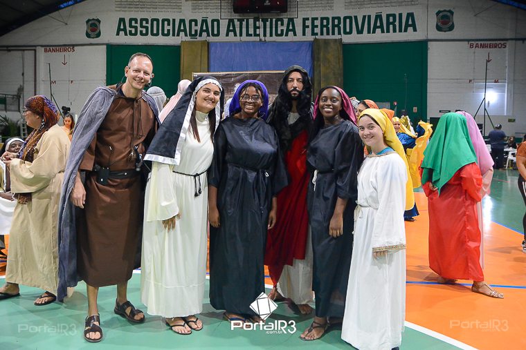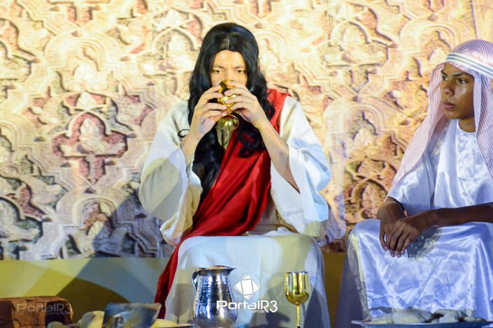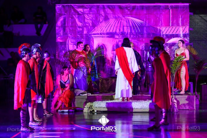 Encenação da Paixão e Morte de Cristo na Ferroviária. [Foto: Allan Modesto | PortalR3]Galeria com fotos da Encenação da Paixão e Morte de Cristo realizado pela Comunidade Aliança Jesus Agora (CAJA) na Sexta-feira Santa, no ginásio da Associação Atlética Ferroviária, em Pindamonhangaba. Cerca de 120 pessoas participaram como ator, figurante e apoio técnico no espetáculo que retrata as principais cenas da Paixão de Jesus Cristo. O evento contou com apoio da Ferroviária e da prefeitura de Pindamonhangaba.