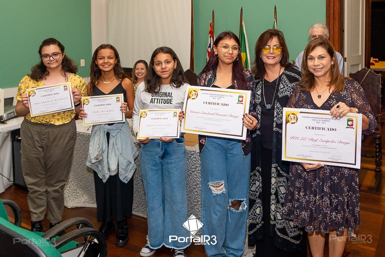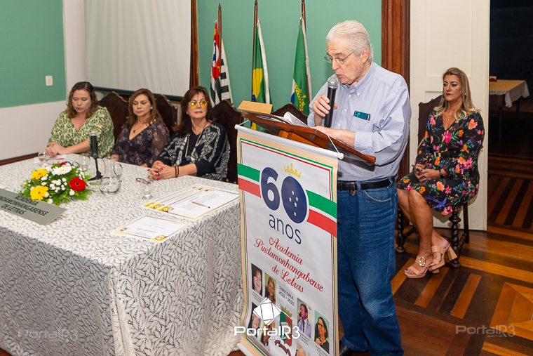 Galeria com fotos da sessão solene do mês de abril de 2023 da Academia Pindamonhangabense de Letras, realizada na quinta-feira, dia 27, no Palacete 10 de Julho, com várias ações.