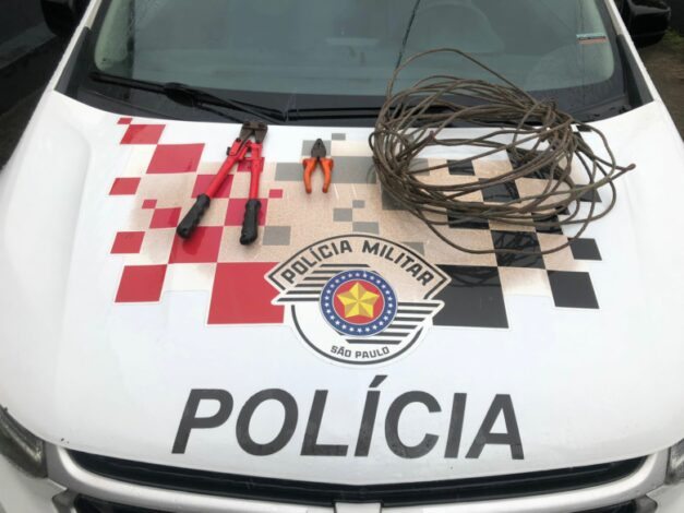 Em busca pessoal foi localizado com o autor dois alicates sendo um deles do modelo “Corta vergalhão” grande e ao lado dele dois pedaços de fiação com cerca de 6 metros.