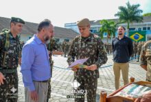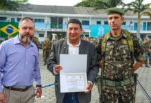 Na sequência, o comandante da Unidade fez a entrega de Diplomas para Amigos do Batalhão. A honraria visa agraciar pessoas de segmentos da sociedade civil e militar que se destacam como apoiadores do 2° BE Cmb.