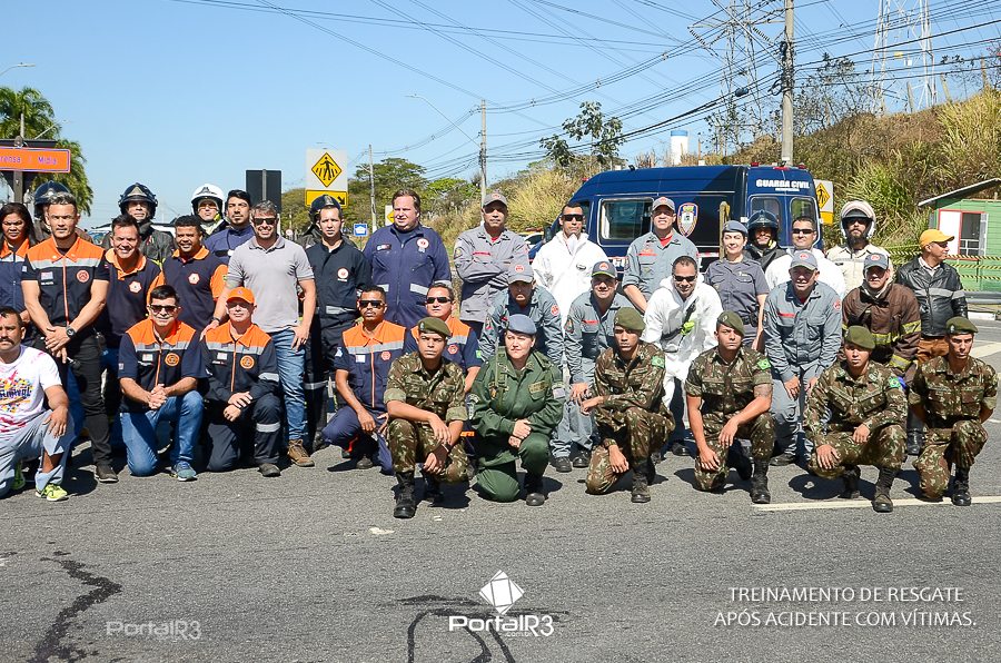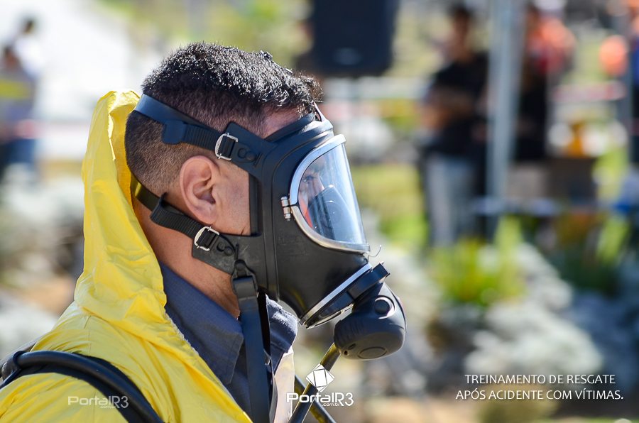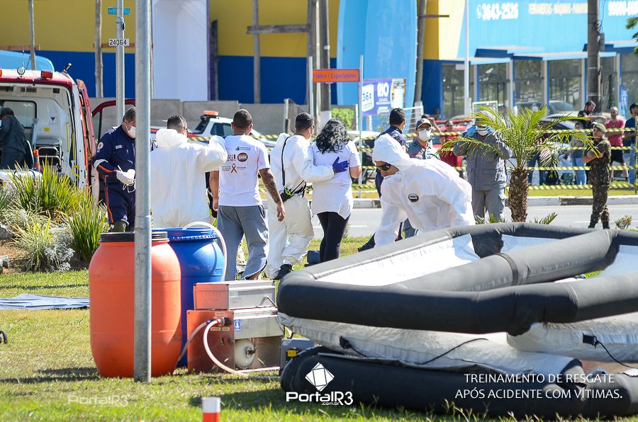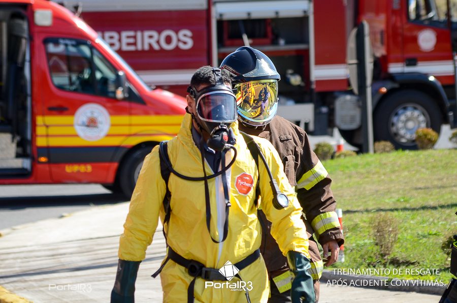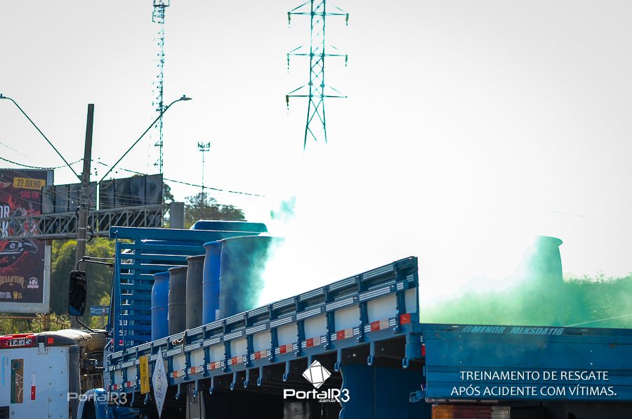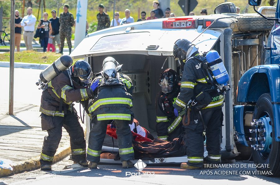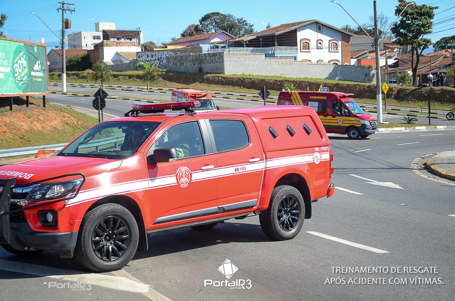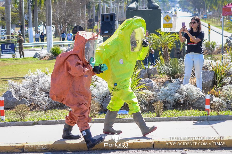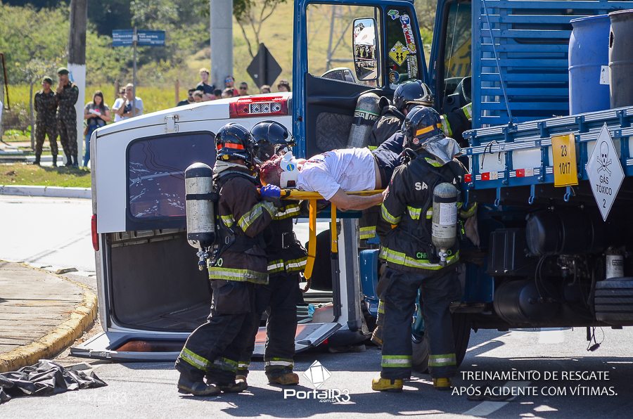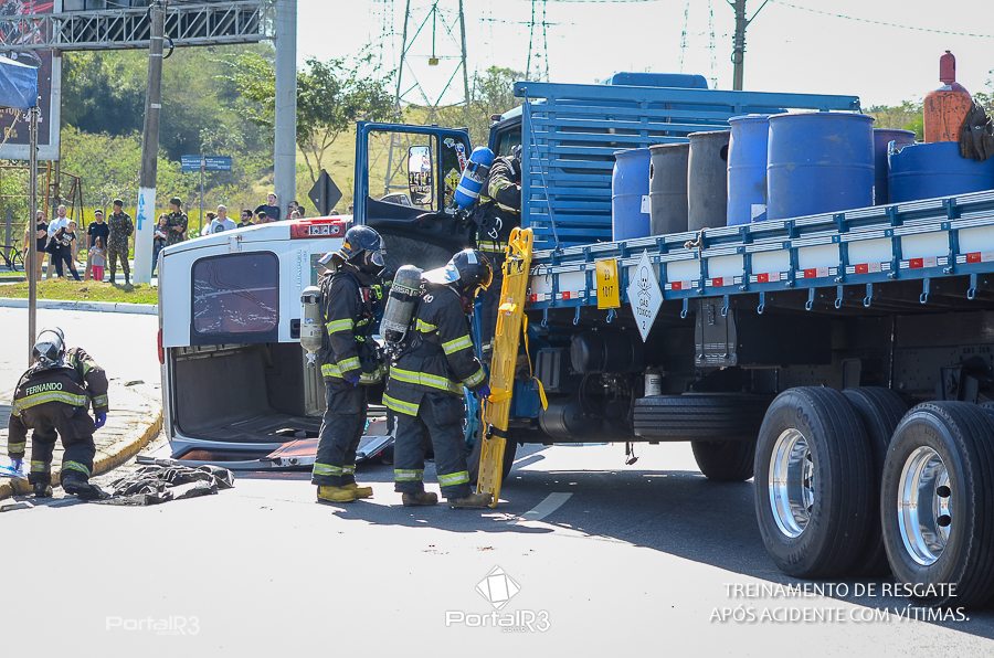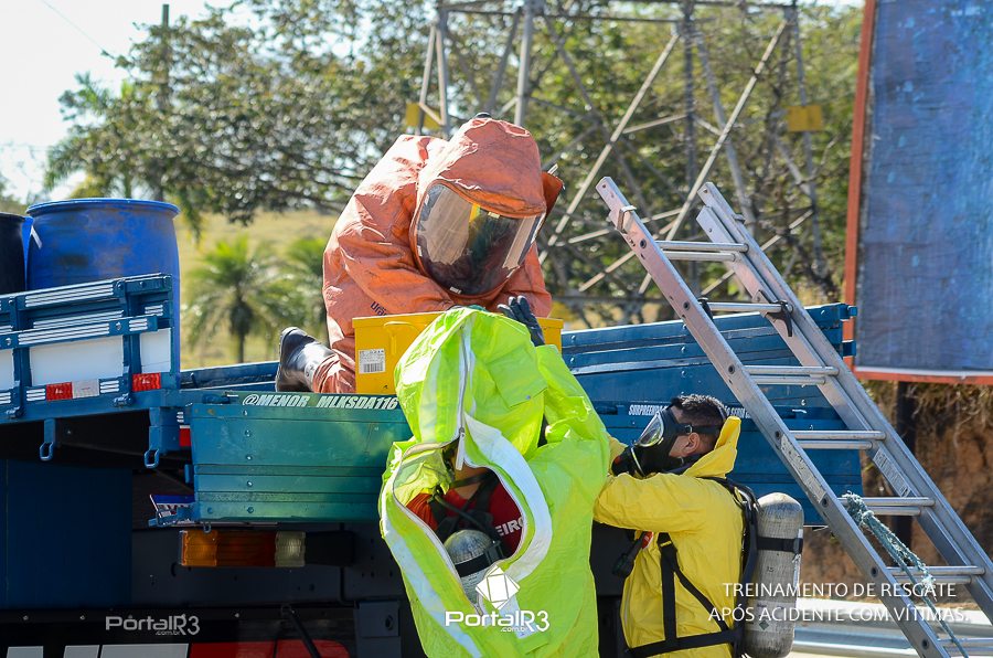 Simulado de resgate após acidente de trânsito com vítimas e vazamento de produtos químicos. (Foto: Alex Santos/PortalR3)