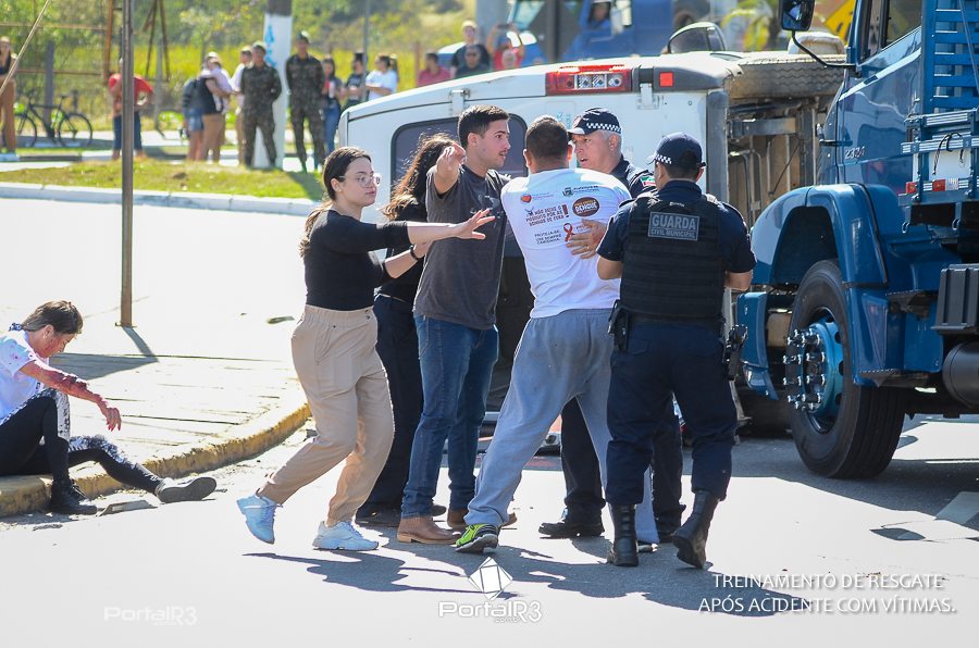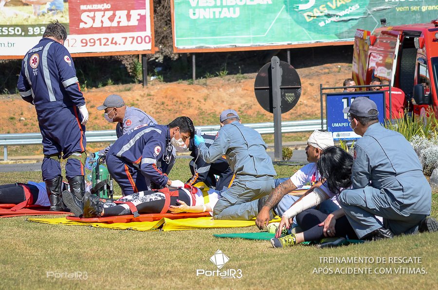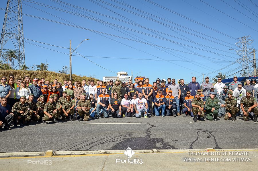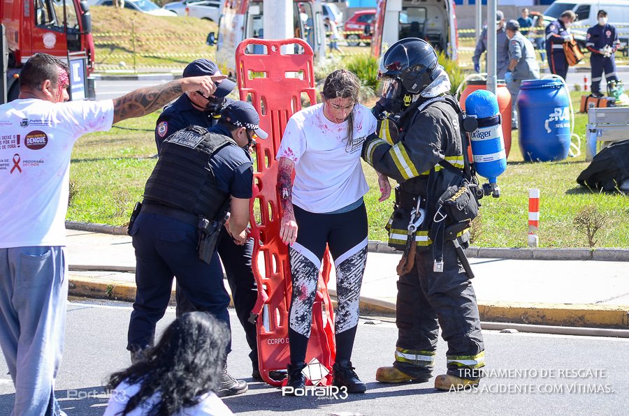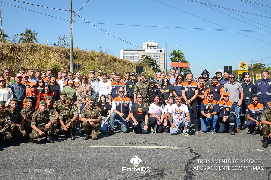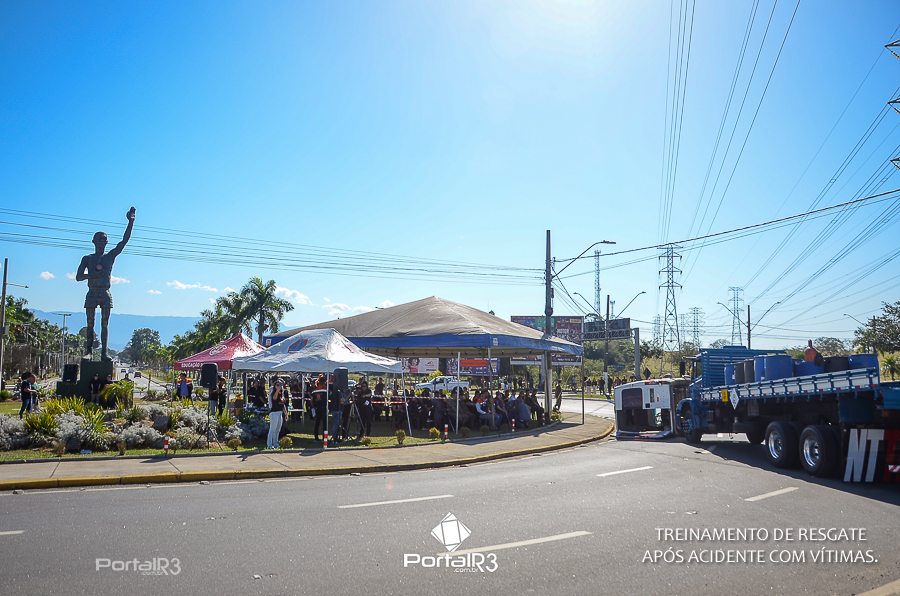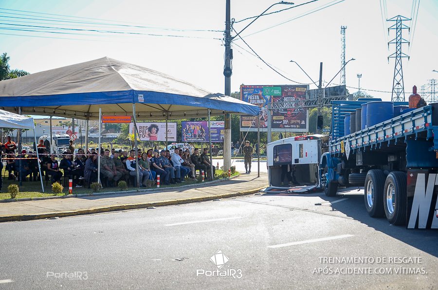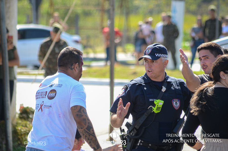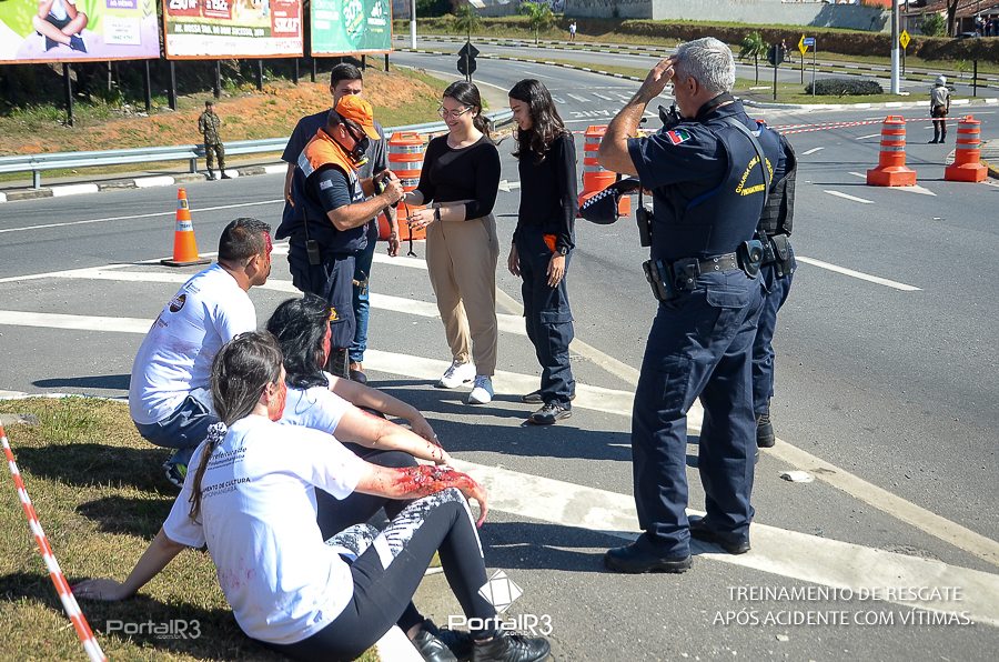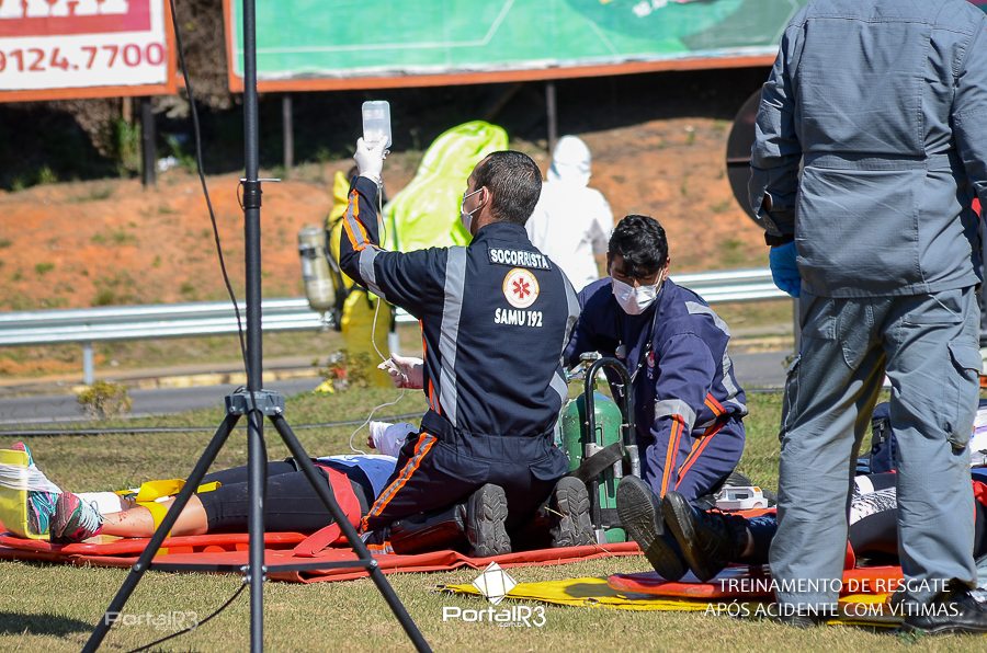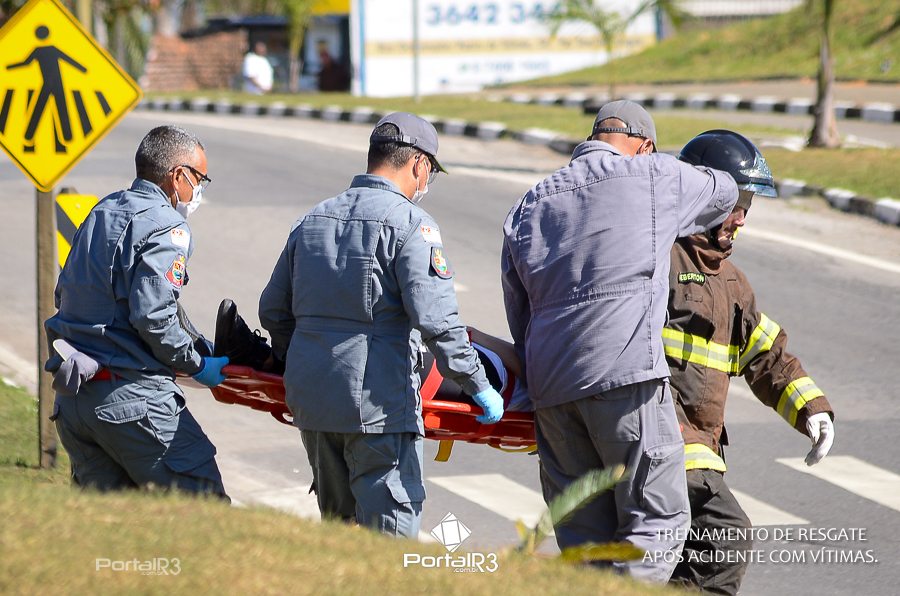Simulado de resgate após acidente de trânsito com vítimas e vazamento de produtos químicos. (Foto: Alex Santos/PortalR3)