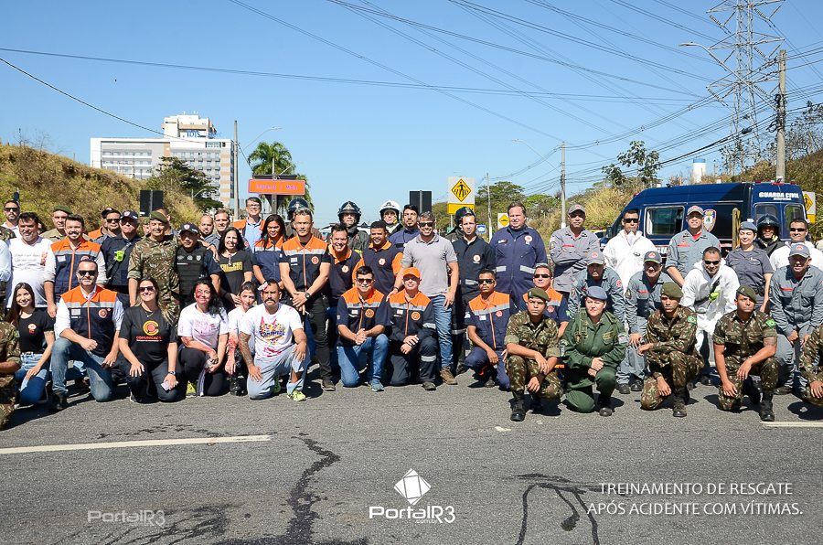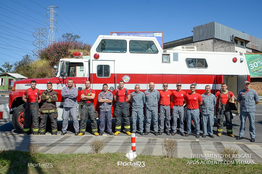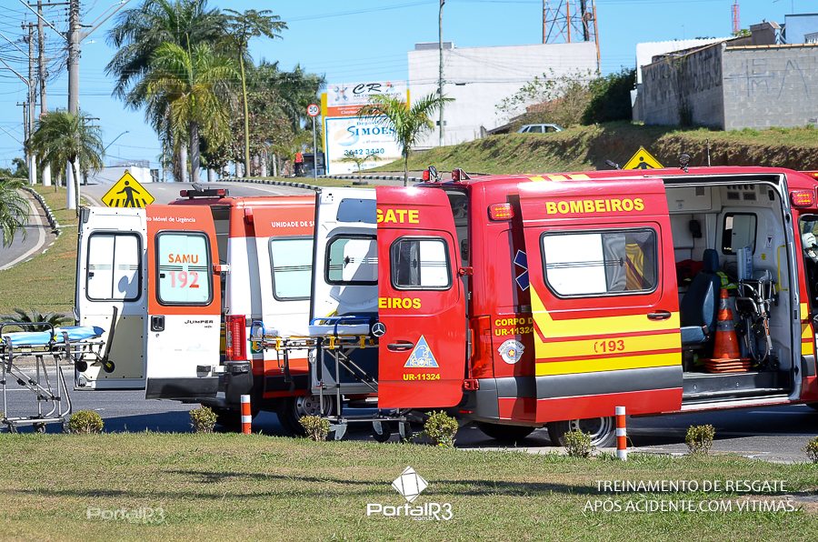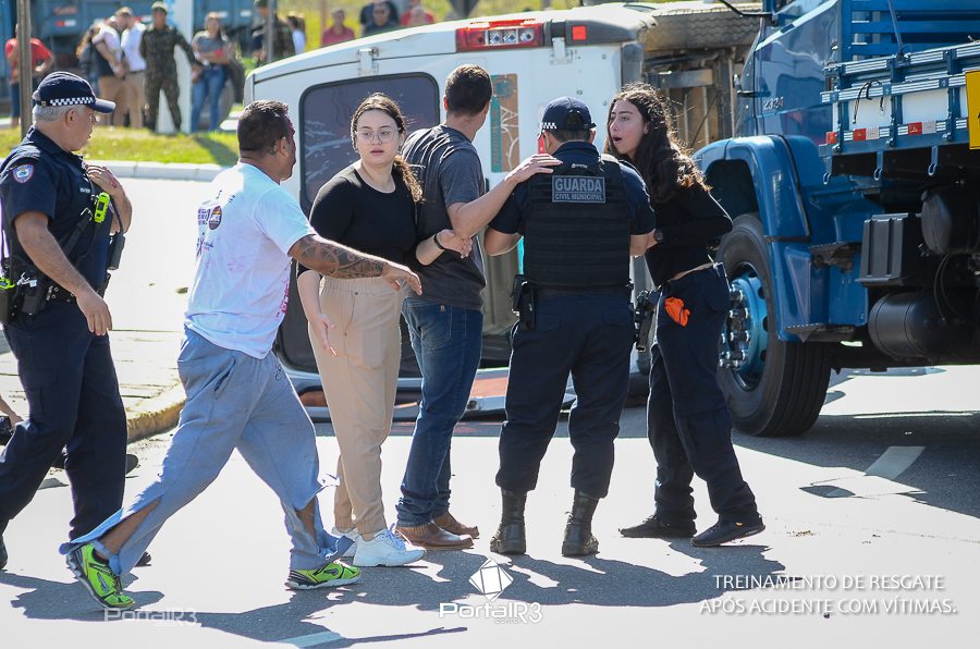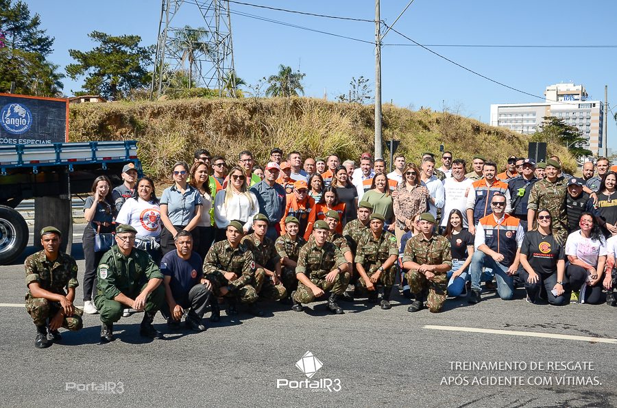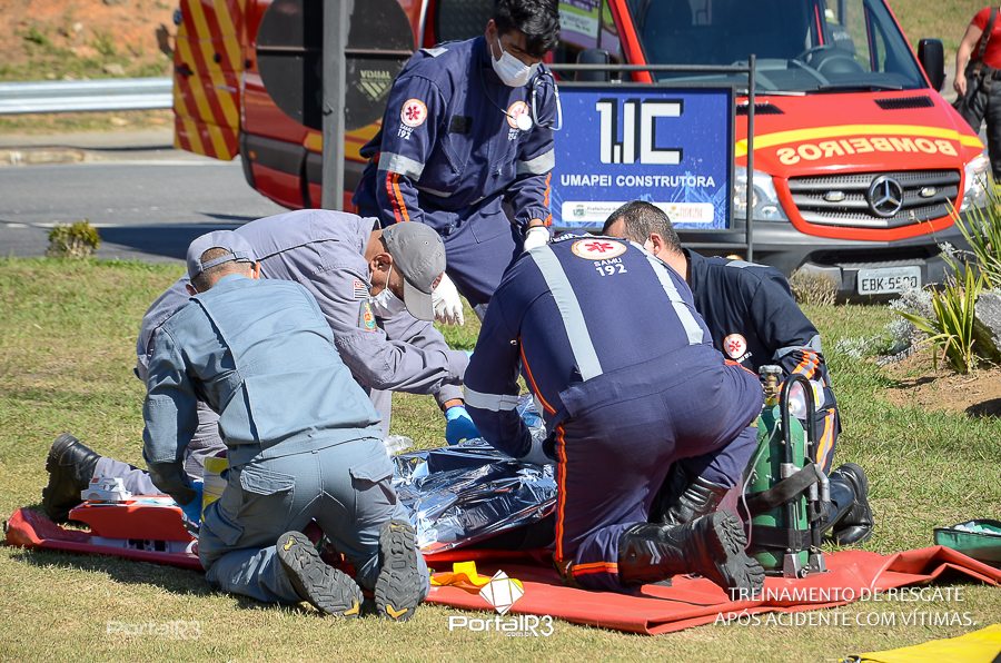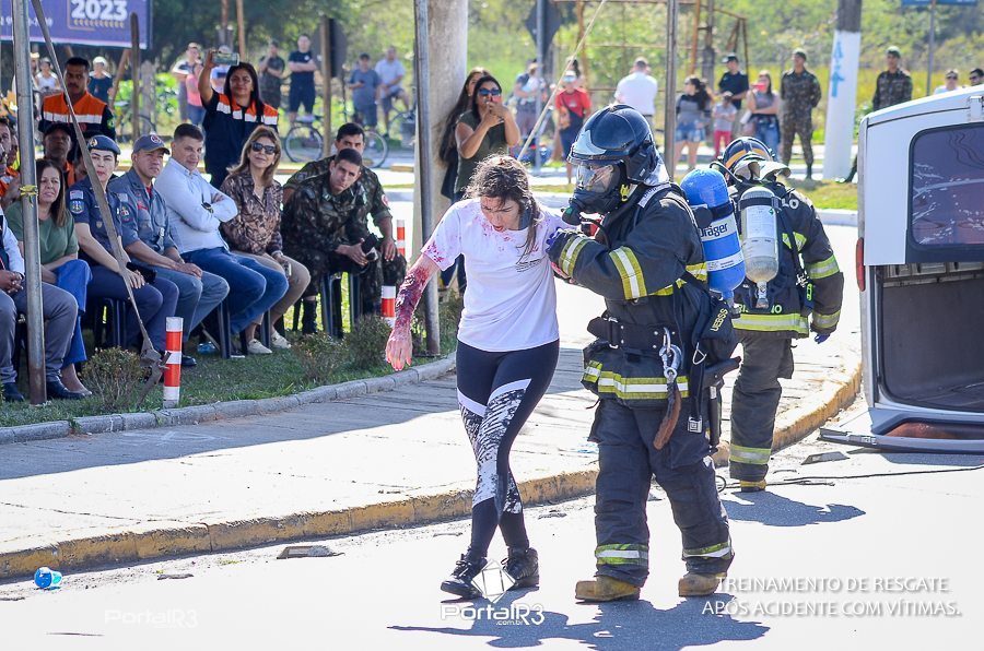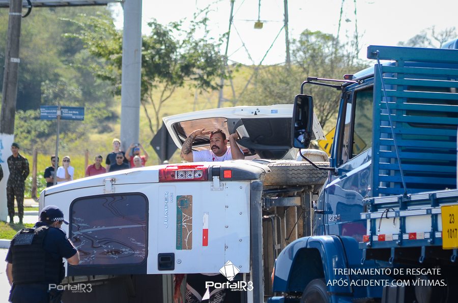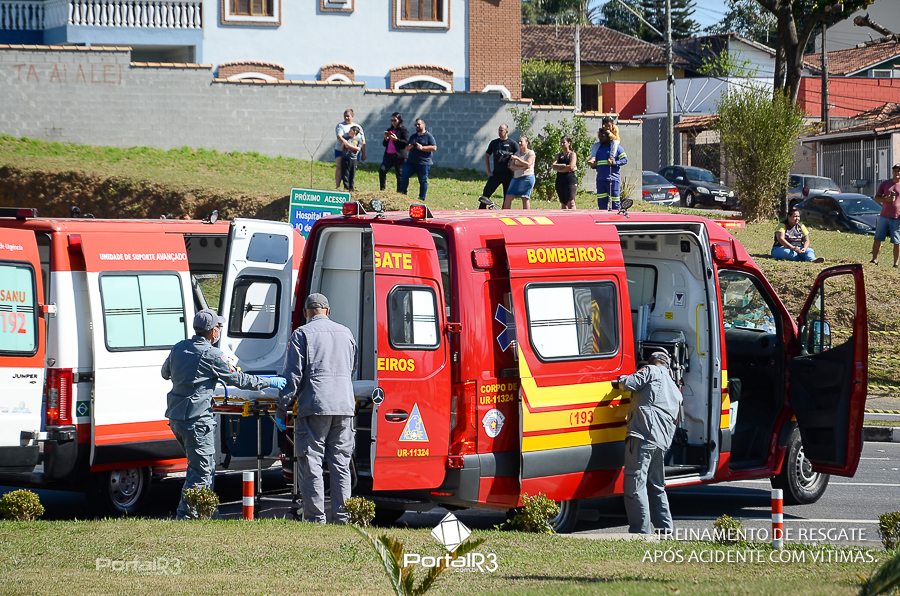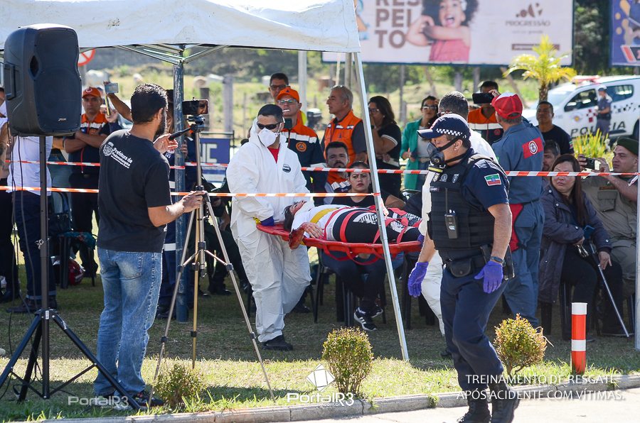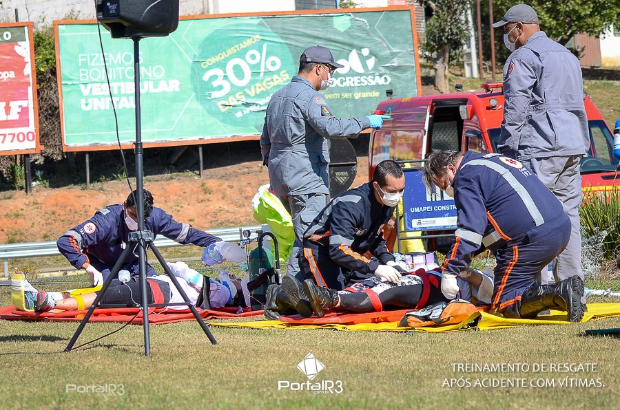Simulado de resgate após acidente de trânsito com vítimas e vazamento de produtos químicos. (Foto: Alex Santos/PortalR3)