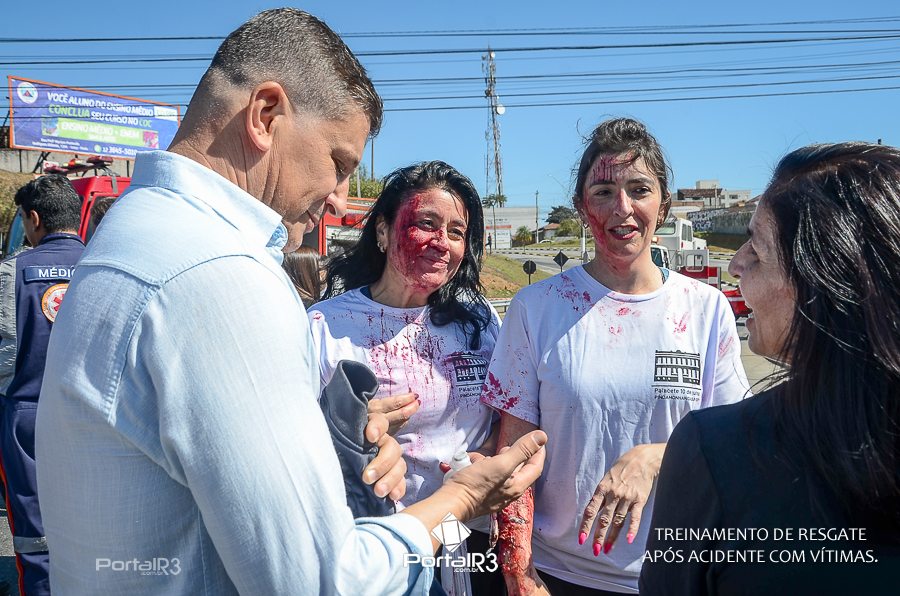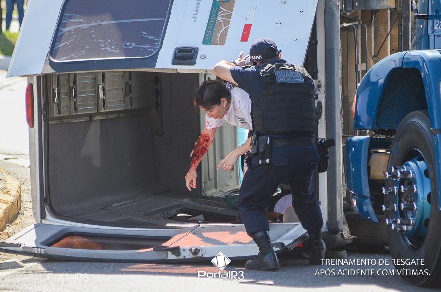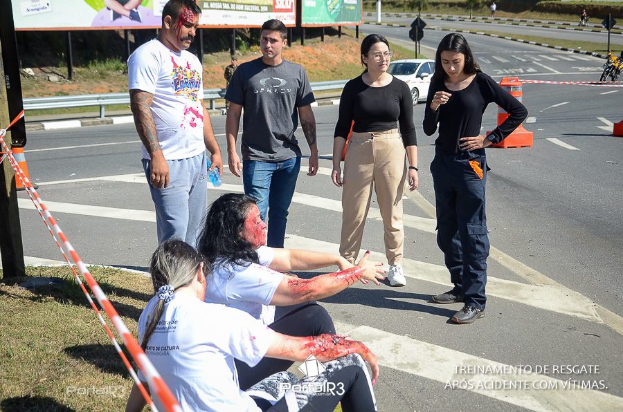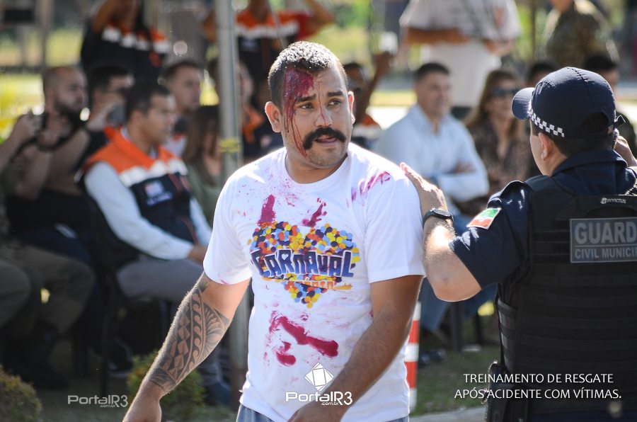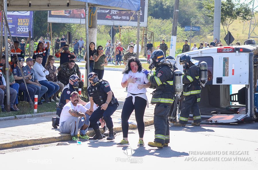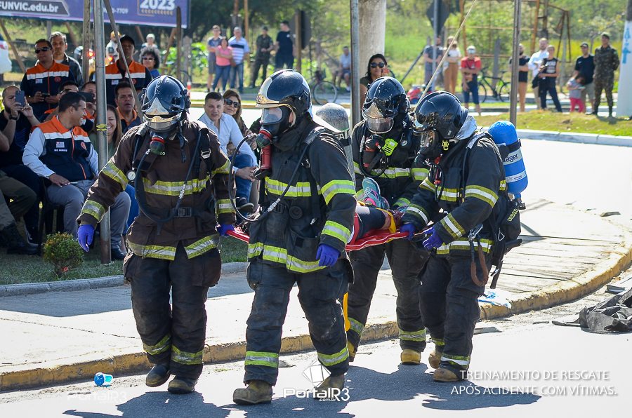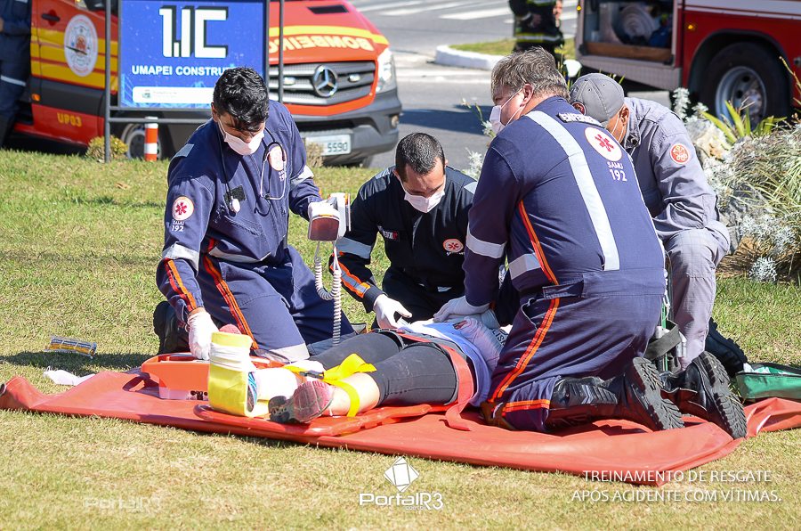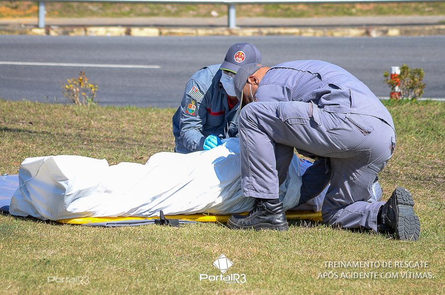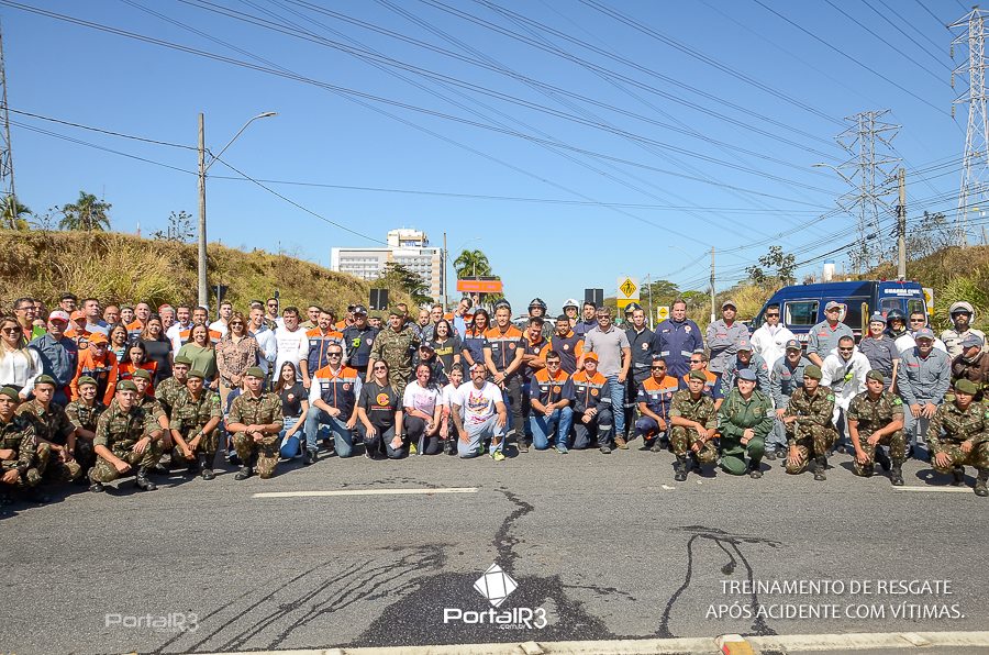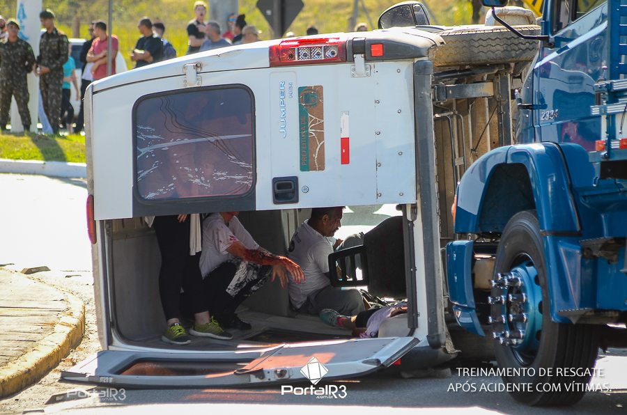 Simulado de resgate após acidente de trânsito com vítimas e vazamento de produtos químicos. (Foto: Alex Santos/PortalR3)