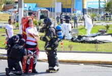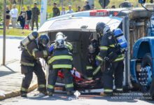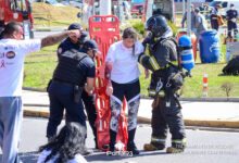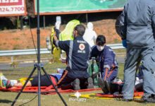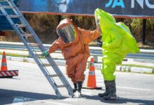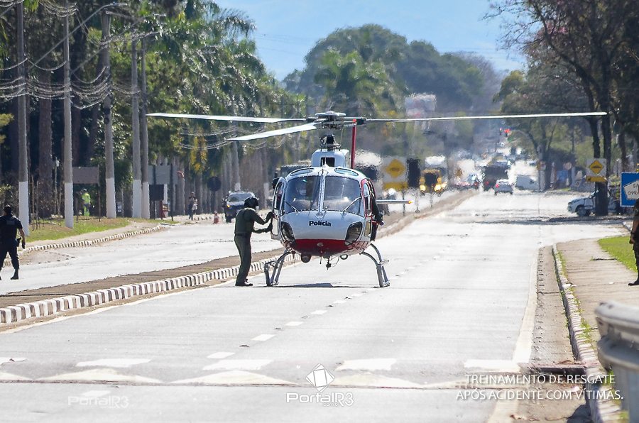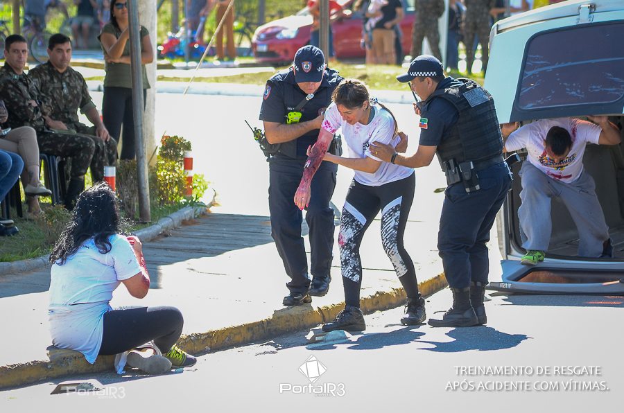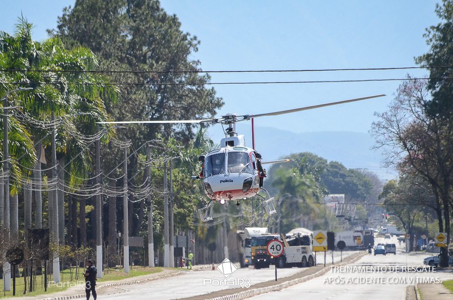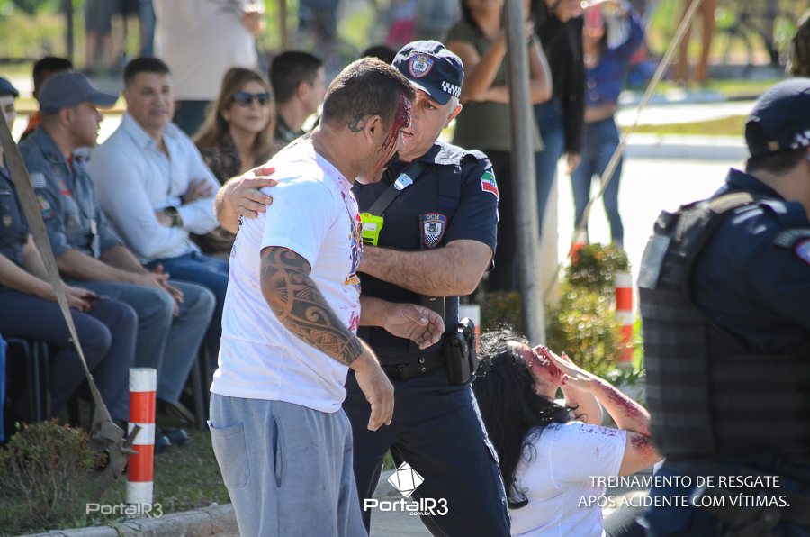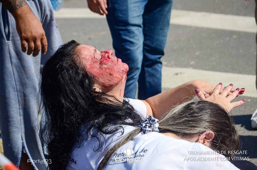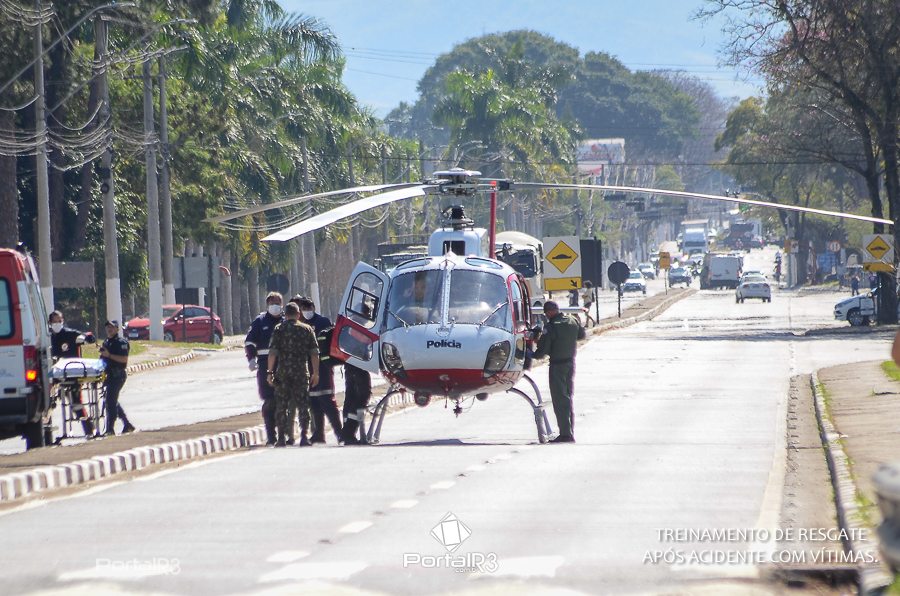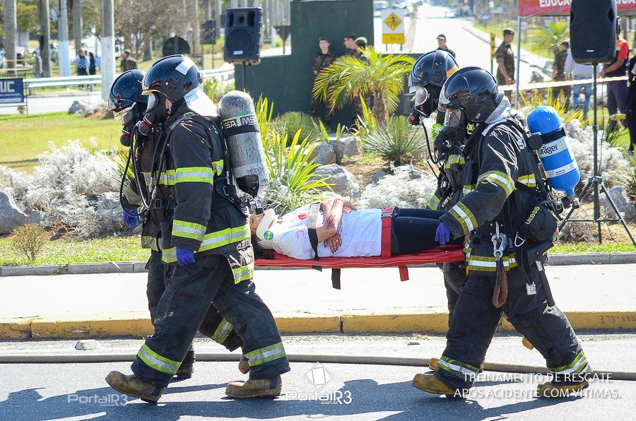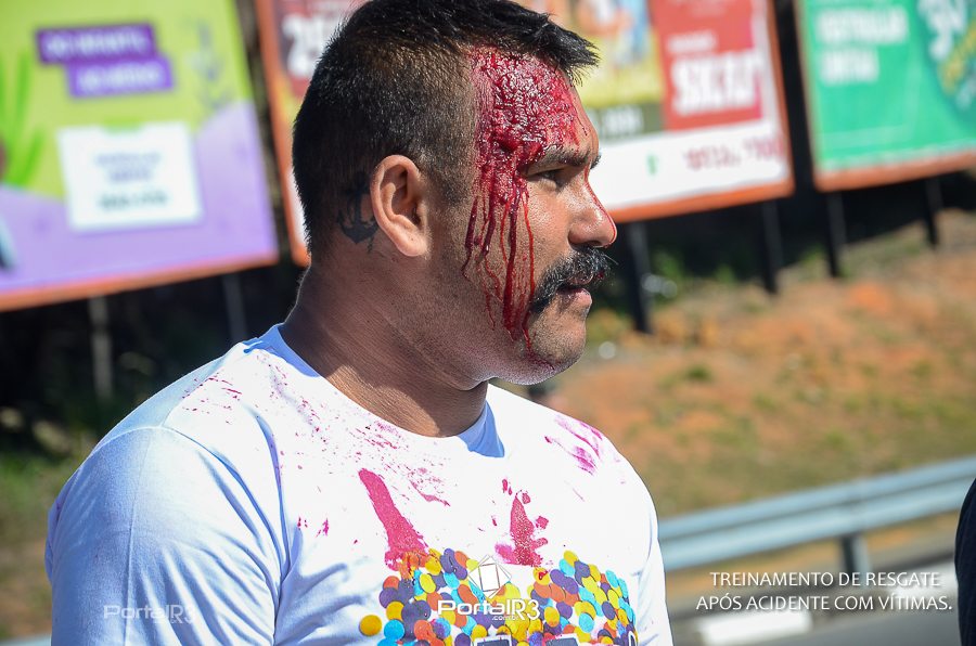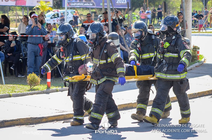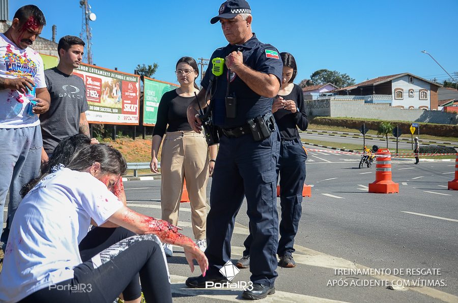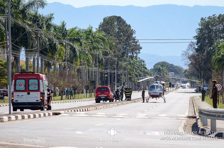 Simulado de resgate após acidente de trânsito com vítimas e vazamento de produtos químicos. (Foto: Alex Santos/PortalR3)