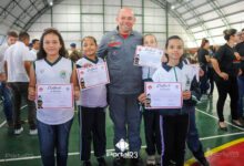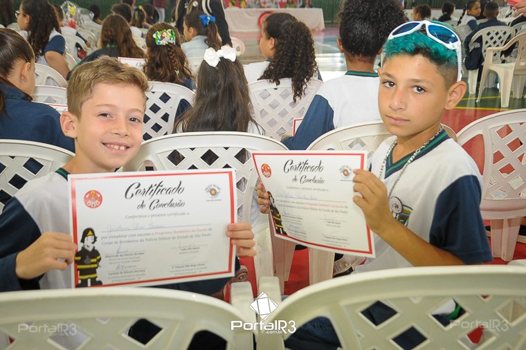 Galeria com fotos da formatura de 344 alunos da Rede Municipal de Ensino de Pindamonhangaba no Programa Bombeiro na Escola. O evento foi realizado no Ginásio de Esportes do Cidade Nova. O Programa Bombeiro na Escola consiste no encontro de um Bombeiro Educador com alunos do 4º ano do ensino fundamental I. Foram realizados 4 encontros com duração de 1h, desde 30 de maio deste ano.