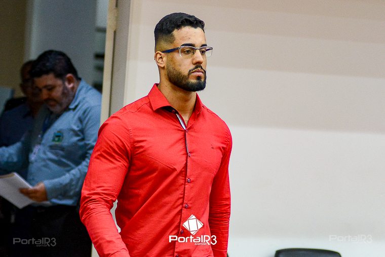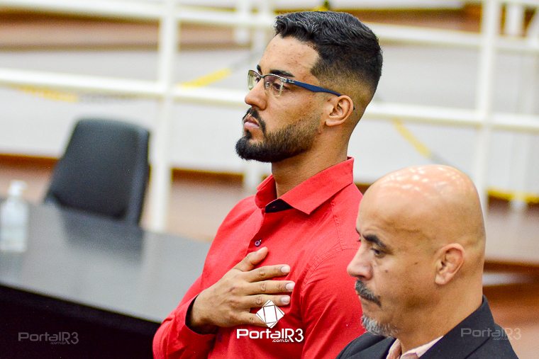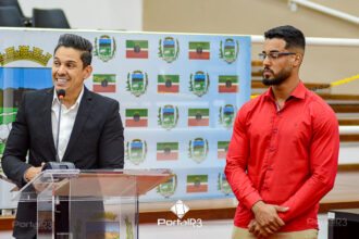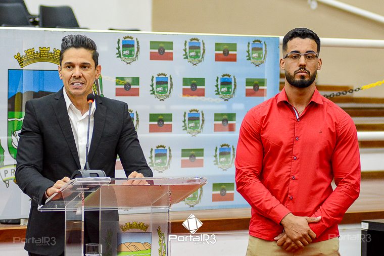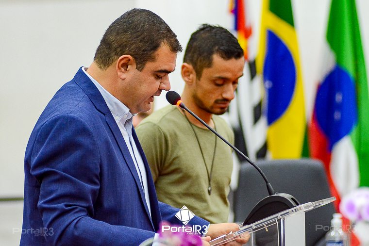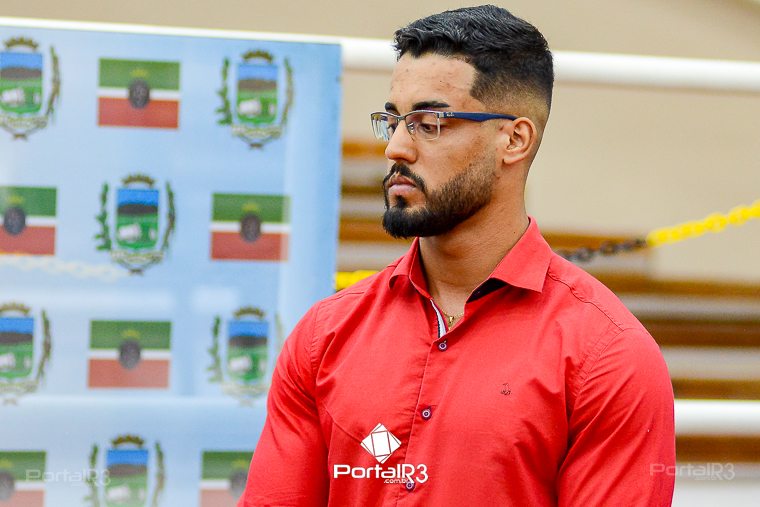 Professor Patrick Alessandro Corneti de Lima foi o orador da noite. [Foto: Allan Modesto | PortalR3]Orador oficial: Após a saudação inicial do Presidente da Mesa, vereador Herivelto Vela e a execução dos Hinos Nacional e de Pindamonhangaba, o cerimonial concedeu a palavra ao orador oficial, professor Patrick Alessandro Corneti de Lima.