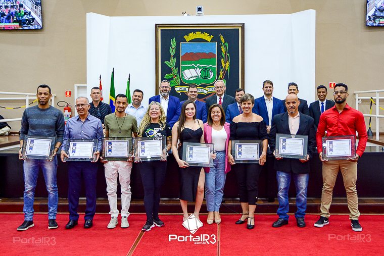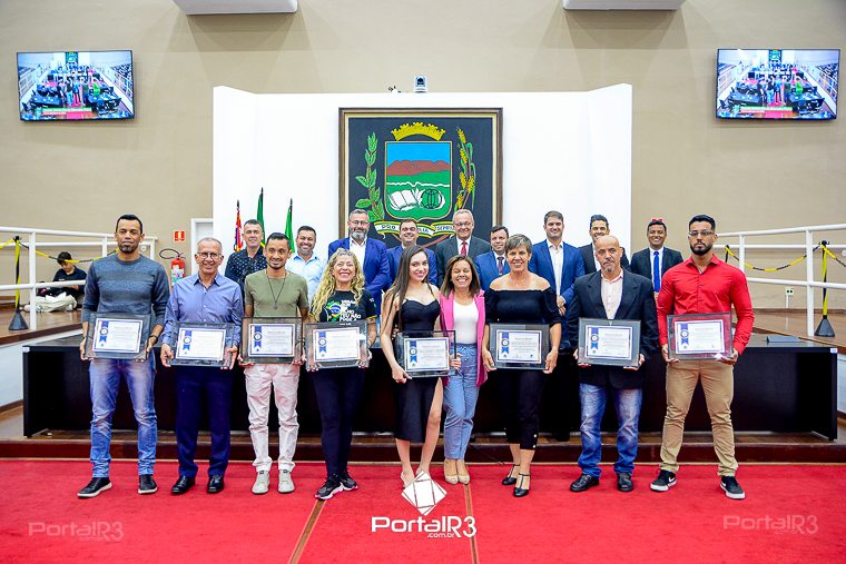 Homenageados e vereadores. [Foto: Allan Modesto | PortalR3]Realizada por intermédio da Lei Ordinária nº 6.540/2022 e organizada por força do Requerimento nº 3.351/2023, de autoria do vereador Herivelto dos Santos Moraes – Herivelto Vela, a Câmara de Pindamonhangaba promoveu na da terça-feira, dia 05 de setembro, a sessão Solene em comemoração a “Dia do Educador Físico”. O ato solene ocorreu no Plenário “Dr. Francisco Romano de Oliveira” e reconheceu e exaltou o trabalho dos profissionais que unem a saúde à atividade física como forma de melhorar a qualidade de vida das pessoas. Foram homenageadas 10 personalidades da cidade que atuam em diversos setores.
