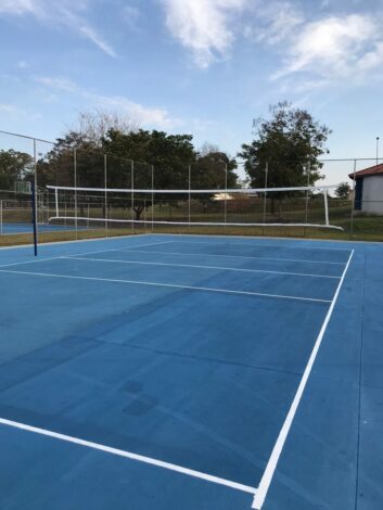 As quatro quadras receberam novas pinturas, foram instalados postes de vôlei de quadra e de areia, além das redes. Com o apoio da Fábrica de Artefatos de Cimento – FAC, foi desenvolvido um projeto-piloto de redes de corrente para as tabelas de basquete.