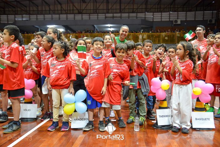 Abertura do Festival de Esportes no “CE João do Pulo” em Pindamonhangaba. [Foto: Allan Modesto | PortalR3]A Secretaria de Esportes e Lazer de Pindamonhangaba realizou a abertura do Festival de Esportes 2023 no Centro Esportivo João Carlos de Oliveira – João do Pulo – na noite da sexta-feira (27). O contou com a presença de muitos alunos das Escolinhas de Esportes, convidados e autoridades e pais dos alunos. Apresentações abrilhantaram a noite.
