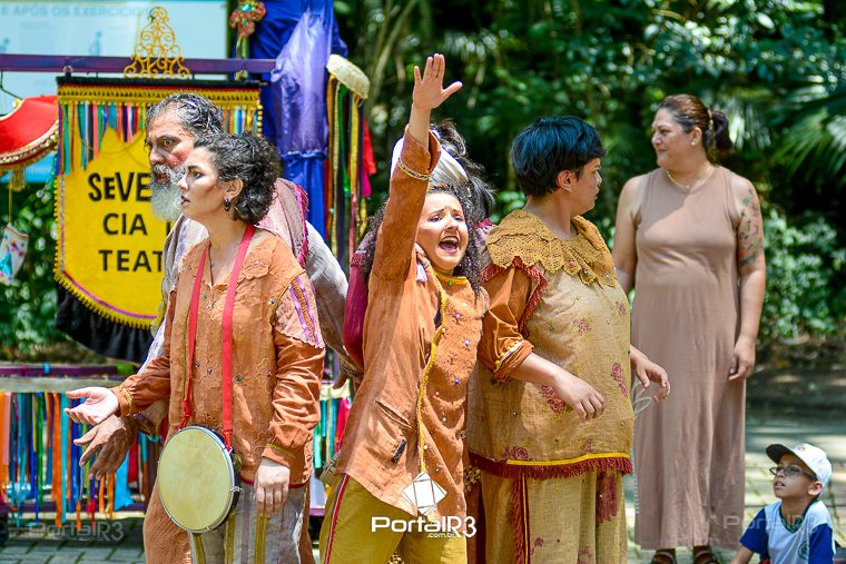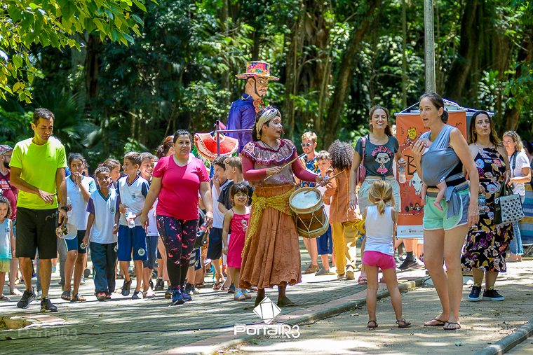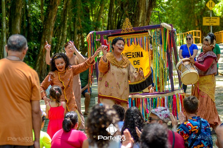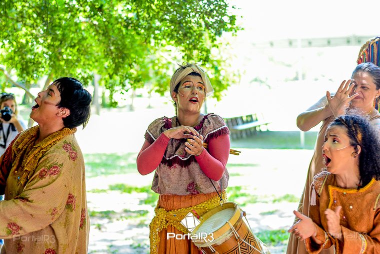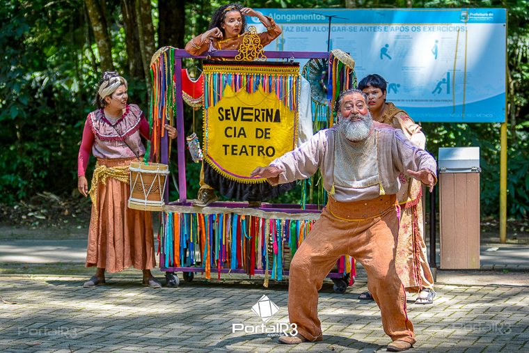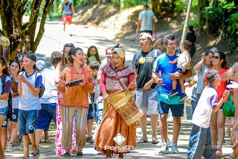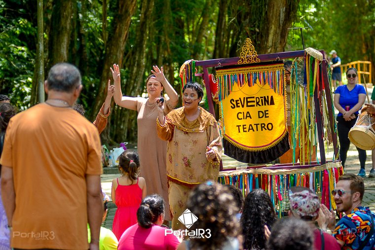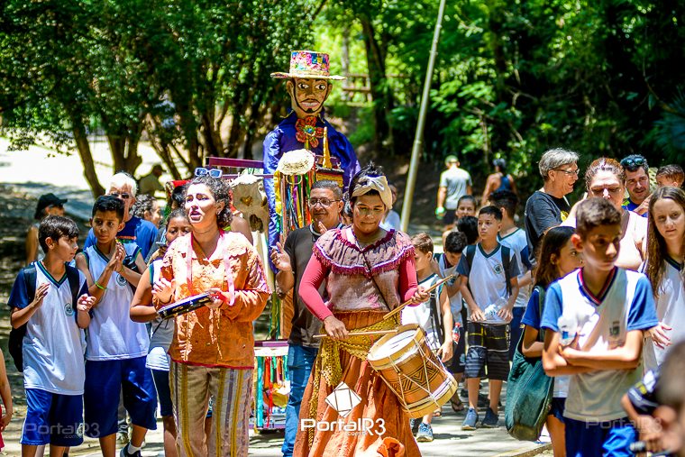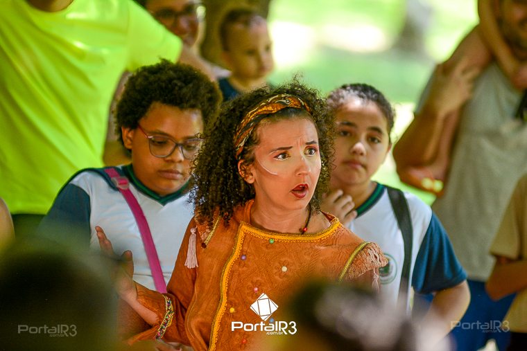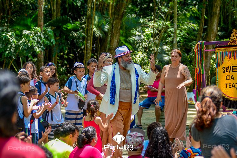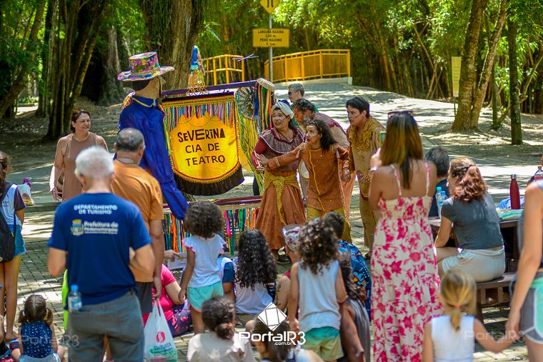 Alunos da Rede Municipal prestigiaram o espetáculo. [Foto: Allan Modesto | PortalR3]O feriado da Proclamação da República começou com teatro no Parque da Cidade em Pindamonhangaba. Às 10 horas, a Severina Cia de Teatro trouxe ao público a peça “Onde anda o Boi Jacá?”.