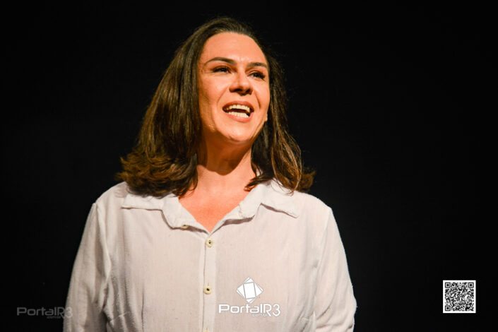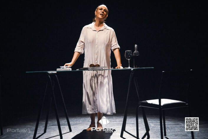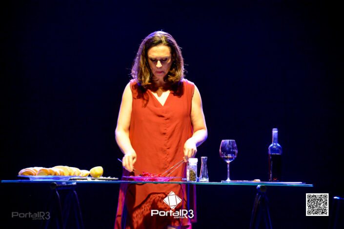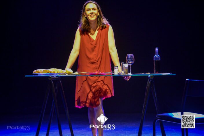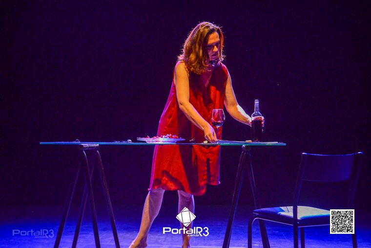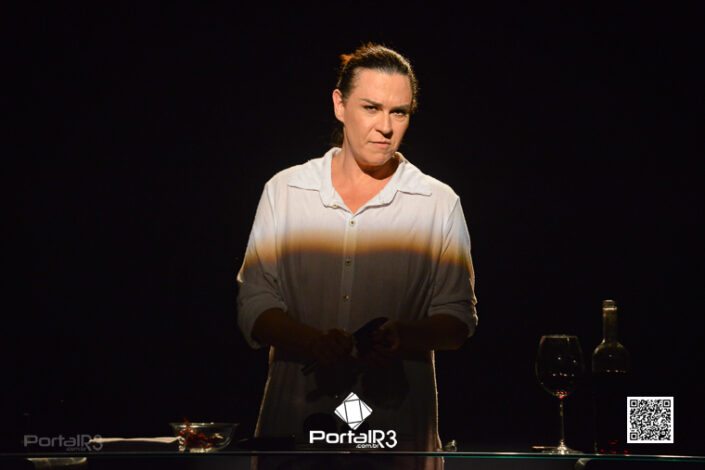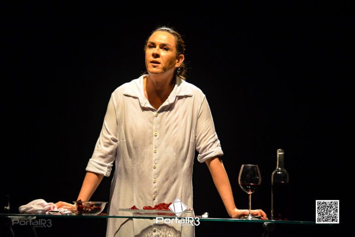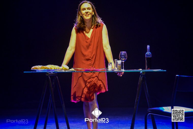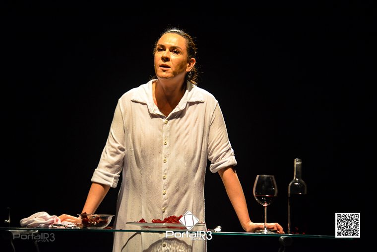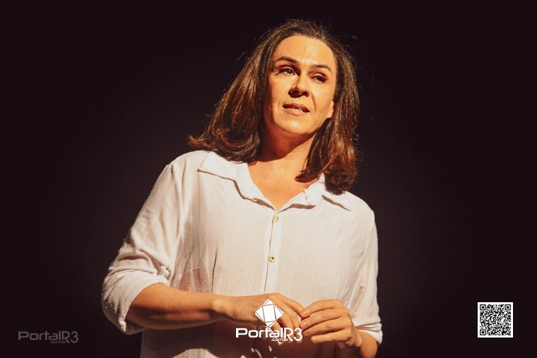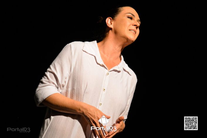 Fábia Mirassos durante atuação no Teatro Galpão. (Foto: LC Antunes / PortalR3)