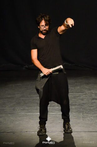 Feste 2023: “Hamlet Cancelado” é apresentado no Teatro Galpão. [Foto: Alex Santos | PortalR3]O espetáculo “Hamlet cancelado”, de Vinícius Piedade, de São Paulo, foi atração na noite da quinta-feira (16), no Teatro Galpão dentre da programação do Festival de Teatro de Pindamonhangaba.