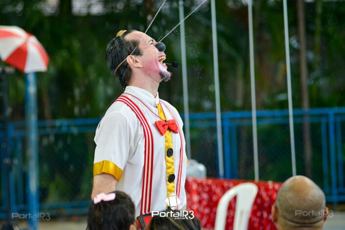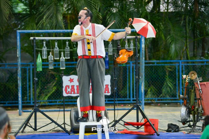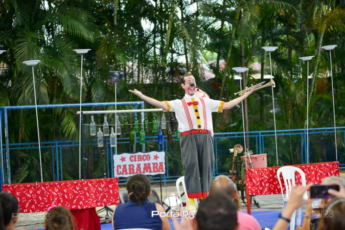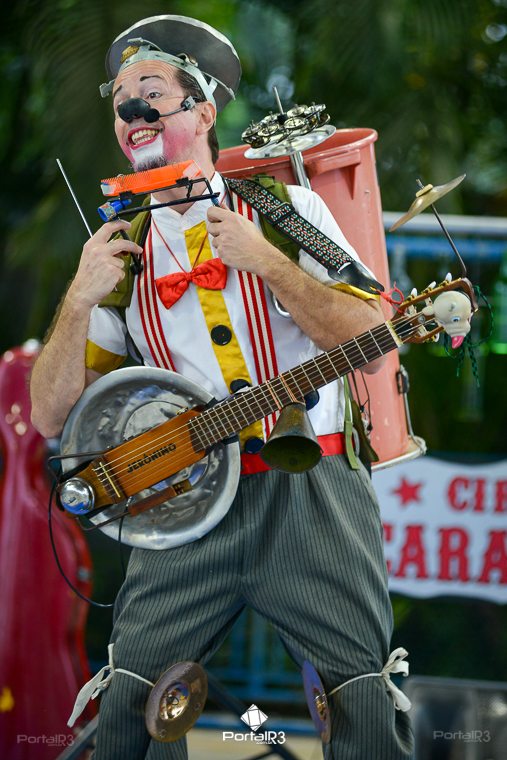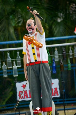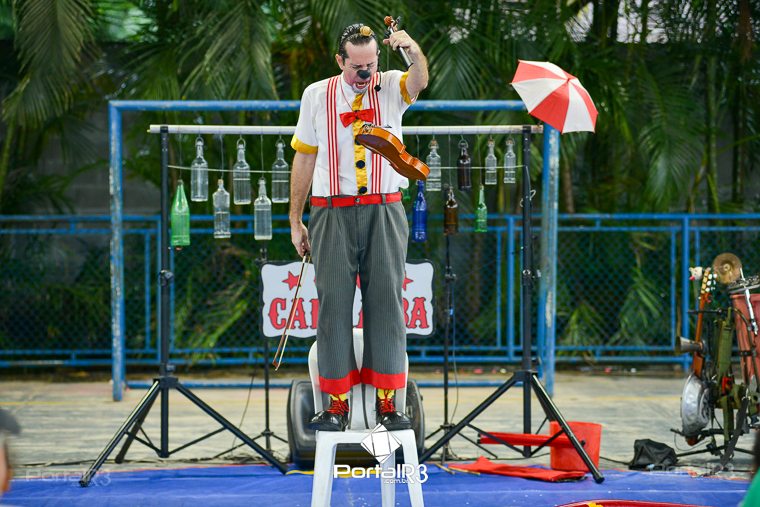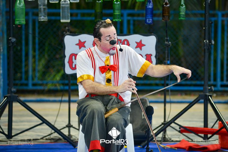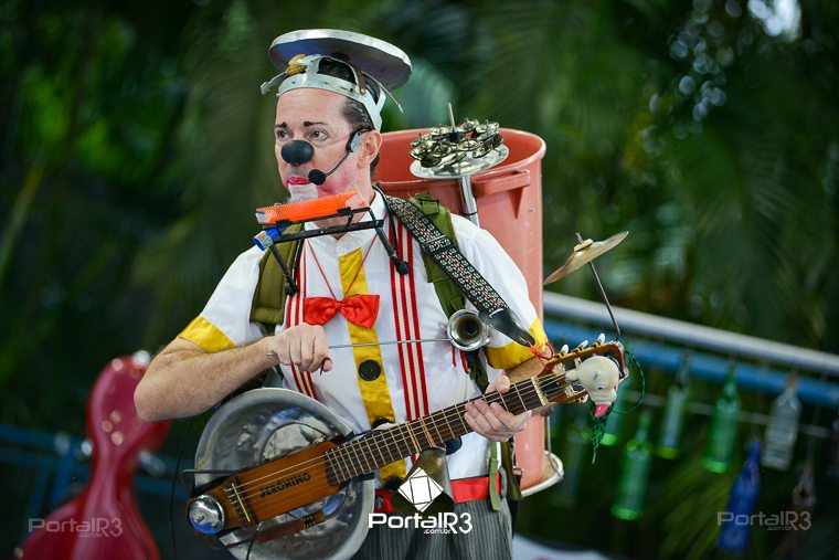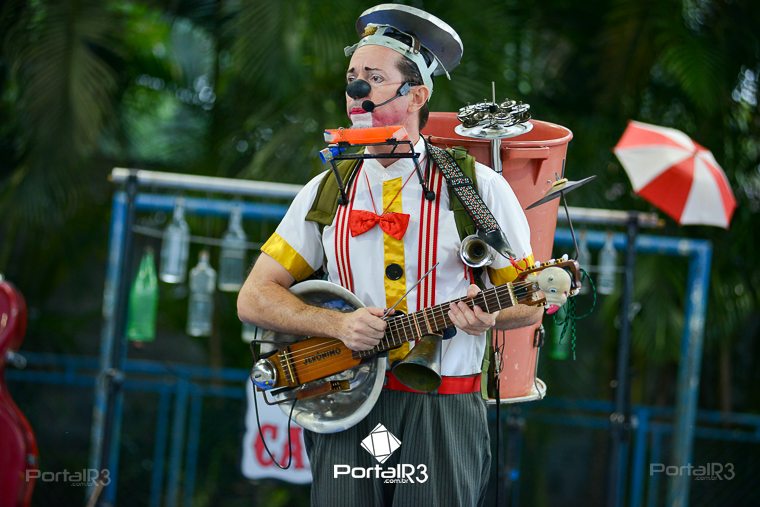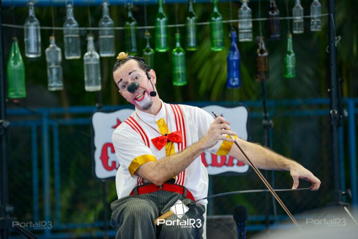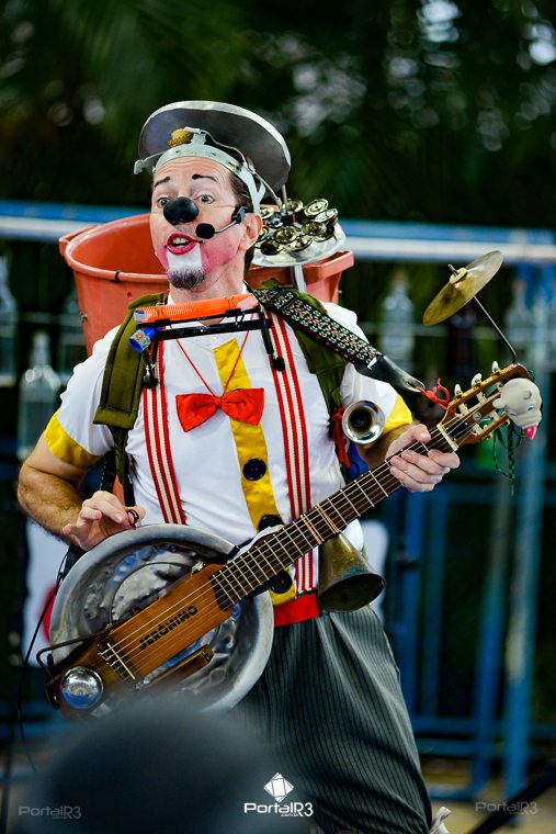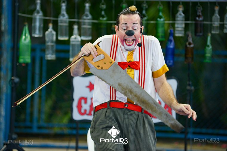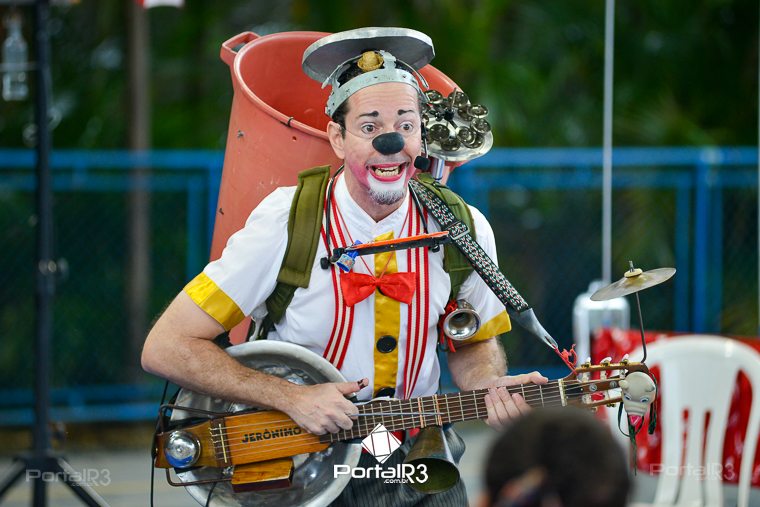 Galeria com fotos do espetáculo “Jeronimo Show”, apresentado na tarde deste domingo (19), no Festival de Teatro de Pindamonhangaba. Durante sua apresentação, o palhaço Jerônimo demonstra todo seu talento como músico e artista circense, além de sua habilidade, sua graça, sua destreza, sua audácia, sua beleza e sua elegância. Bem, talvez ele nem tenha tantas qualidades assim, mas esta excêntrica figura realmente acredita que é um showman, então o melhor a fazer é embarcar com Jerônimo na aventura artística muito divertida.