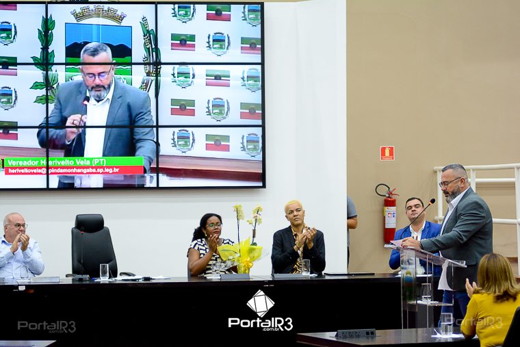A Sessão Celebrativa foi a oportunidade em que o Poder Legislativo reconheceu e ofereceu homenagens – por meio de Diplomas de Honra ao Mérito e um Cartão de Prata – aos ilustres cidadãos representantes da comunidade negra do município, que detém o respeito, o reconhecimento, a liberdade de expressão e expressa a igualdade na busca de uma sociedade moderna, fraterna, justa e igualitária. A sessão foi promovida por intermédio do Requerimento nº 4.311/2023, de autoria do vereador Herivelto dos Santos Moraes – Herivelto Vela, que também presidiu o ato solene. Além do vereador Vela, participaram da Mesa Diretora da sessão, o Presidente da Câmara, vereador Norberto Moraes; o Vice-Prefeito da cidade, Ricardo Piorino, o Secretário da Mulher, Família e Direitos Humanos, João Carlos Ribeiro Salgado; o Presidente do Conselho Municipal de Participação e Desenvolvimento da Comunidade Negra de Pindamonhangaba, Wagner Eduardo Conceição Souza; a Presidente da Comissão da Igualdade Racial da OAB de Pindamonhangaba, Dra. Évelyn Ana da Silva Xisto e a Diretora de Direitos Humanos de Pindamonhangaba, Maria Aparecida Pedroso Rocha Pena. Participaram da sessão, a vereadora Regina Célia Daniel Santos – Regininha e o vereador José Carlos Gomes – Cal.