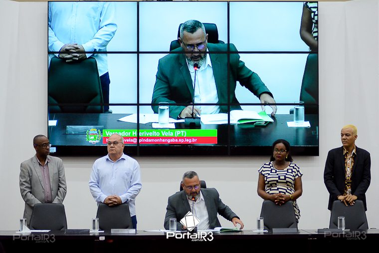 A sessão foi aberta coma saudação do vereador Herivelto Vela e logo em seguida uma inovação: o Hino Nacional Brasileiro foi interpretado na voz da cantora Sara Cristina Alves de Lima e Hino de Pindamonhangaba com vídeo de acompanhamento cedido pela Banda Sinfônica da Corporação Musical Euterpe pelo cantor Wagner Leandro Ribeiro – Wagner Muzak.