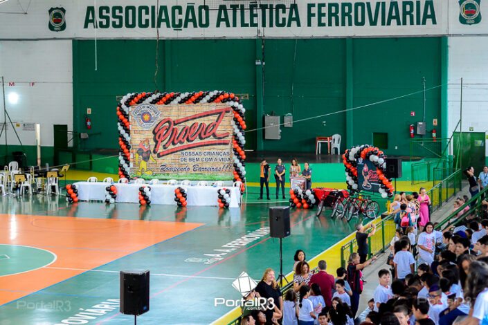 A Polícia Militar realizou na manhã desta segunda-feira, dia 11 de dezembro, a formatura com mais uma turma do PROERD – Programa Educacional de Resistência às Drogas e à Violência. O evento aconteceu no ginásio da Associação Atlética Ferroviária.