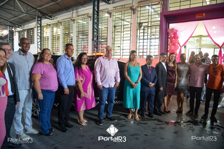 Durante a celebração, o carro destinado à patrulha e os guardas da Guarda Civil Municipal estiveram presentes, reforçando o compromisso da cidade com a segurança e o combate à violência.