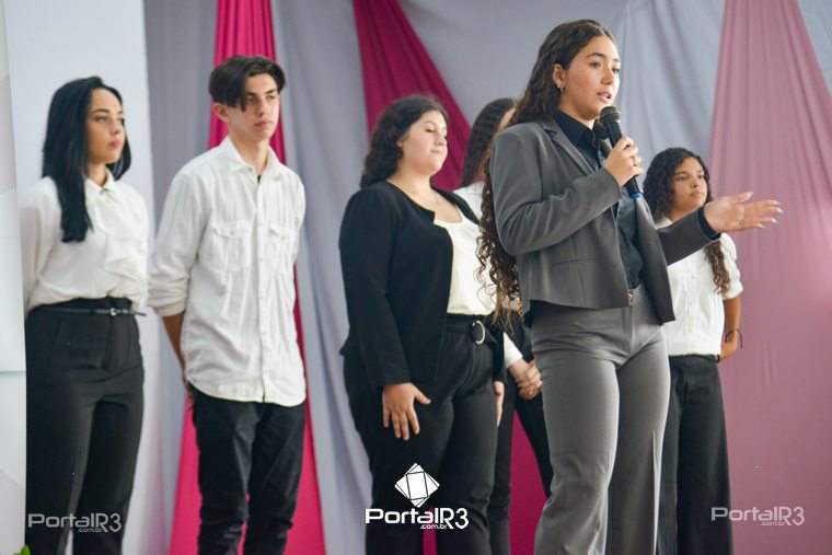 O evento, que teve lugar na ETEC João Gomes de Araújo, contou com presença de representantes do Executivo, Legislativo e Judiciário, além de convidados e teve seu início com apresentações dos alunos da ETEC, destacando a luta contra a violência à mulher.