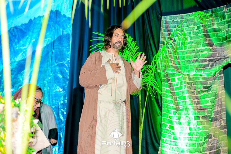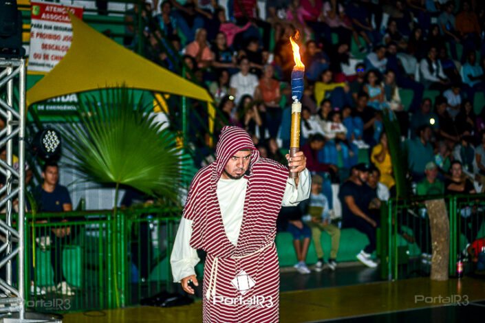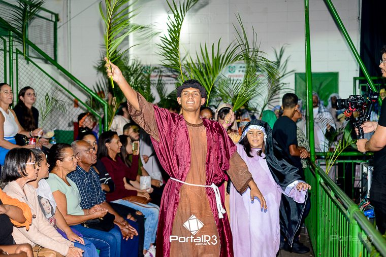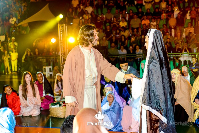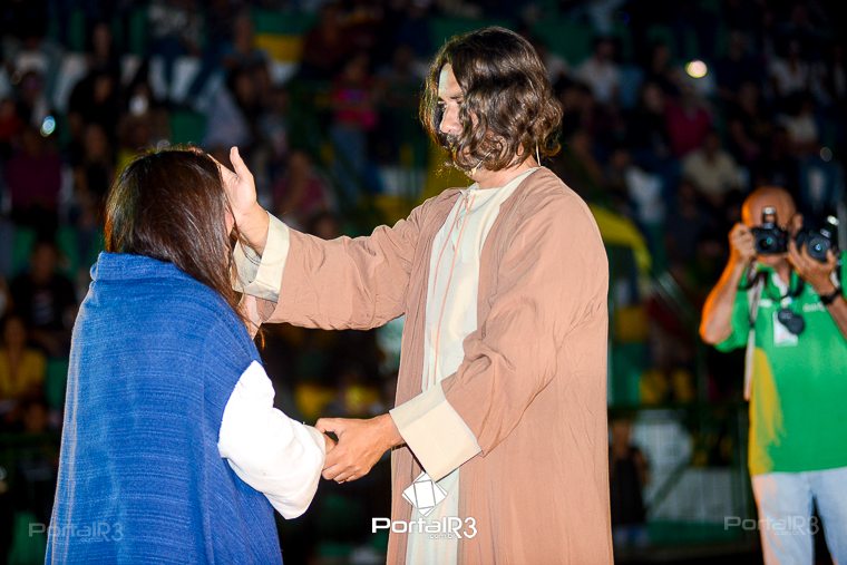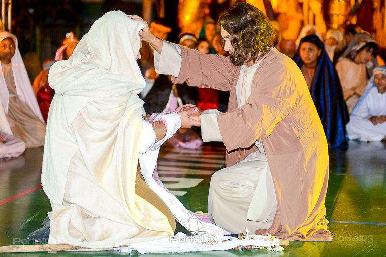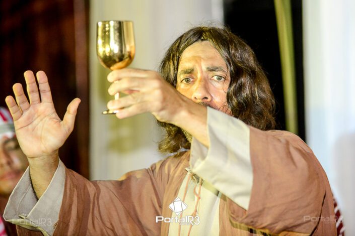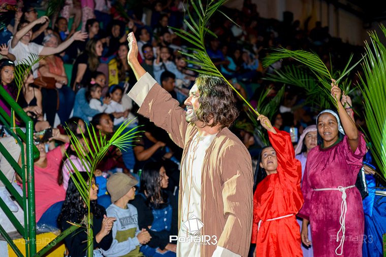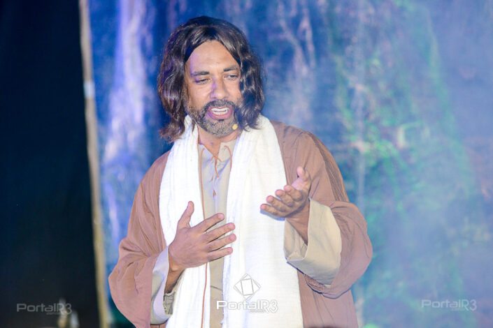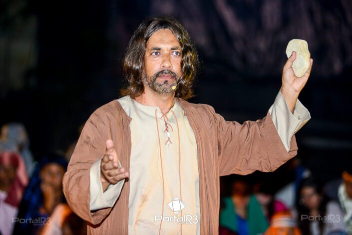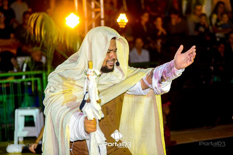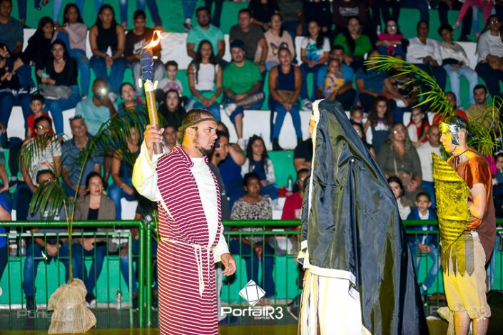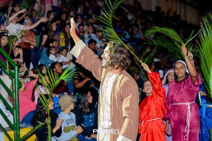 Encenação “Paixão de Cristo” na Ferroviária em Pindamonhangaba. [Foto: Allan Modesto | PortalR3]Na sexta-feira, 29 de março, mesmo em uma noite chuvosa em Pindamonhangaba, o ginásio da Associação Atlética Ferroviária ficou lotado para prestigiar a encenação da Paixão de Cristo, que também celebrou os 30 anos sob organização da Comunidade Aliança Jesus Agora (CAJA).