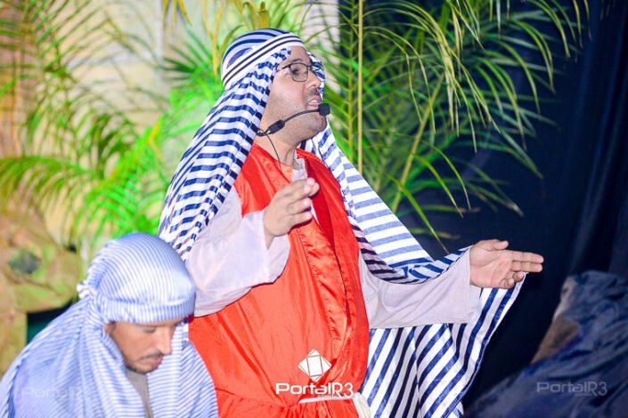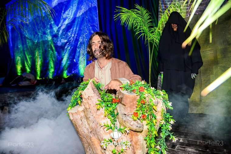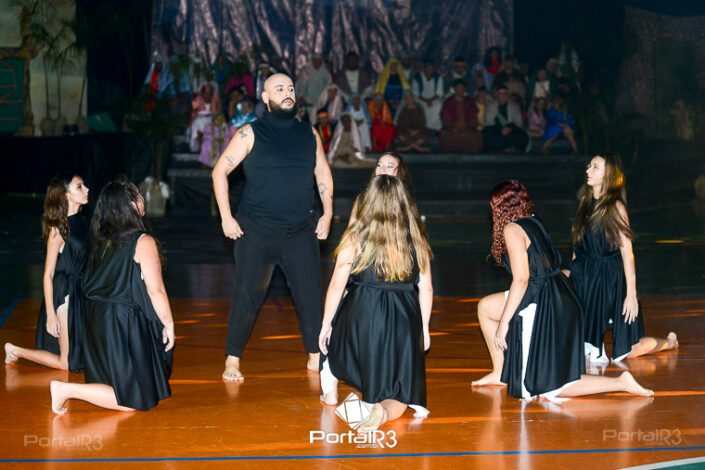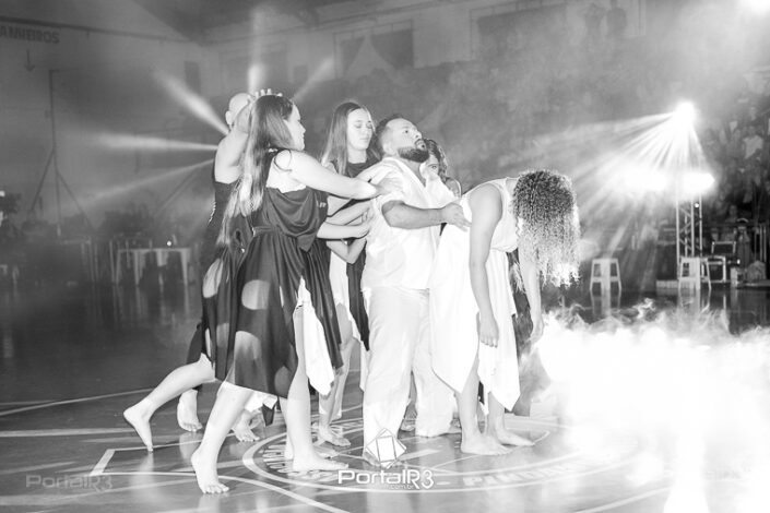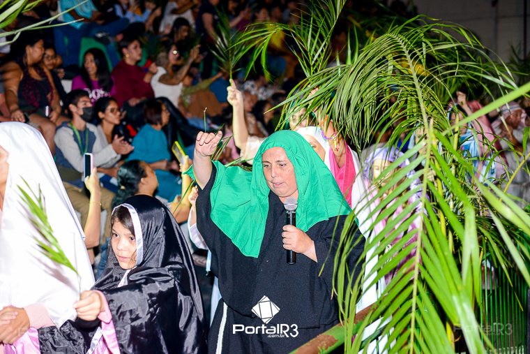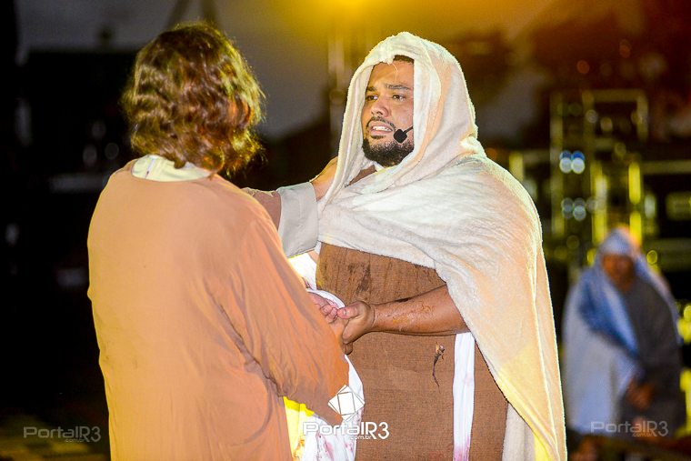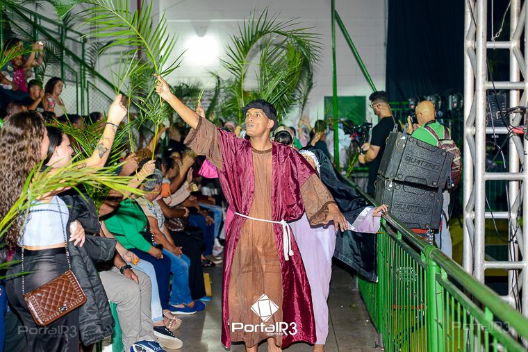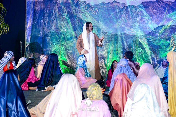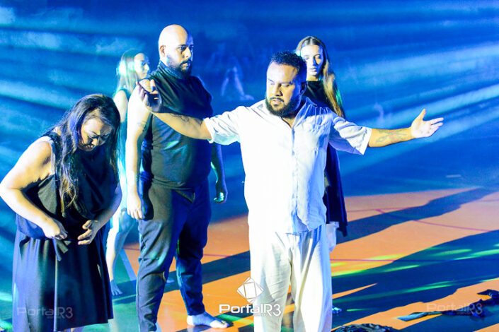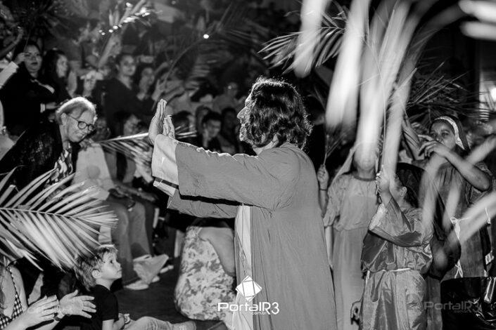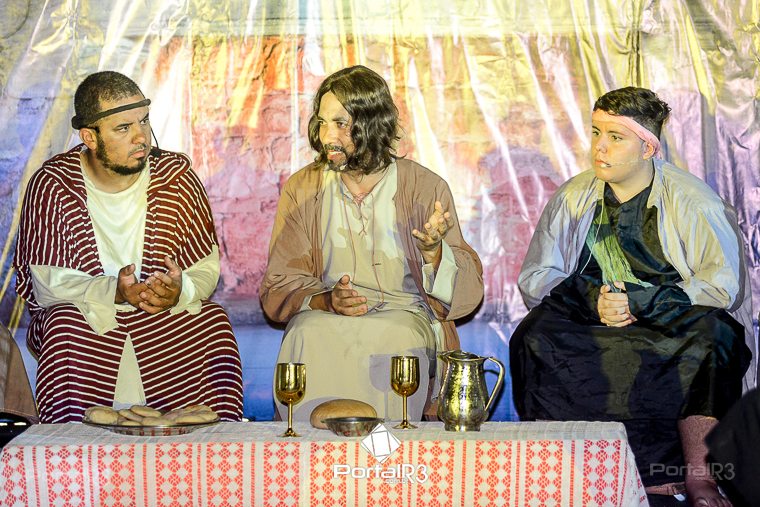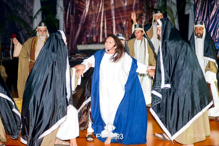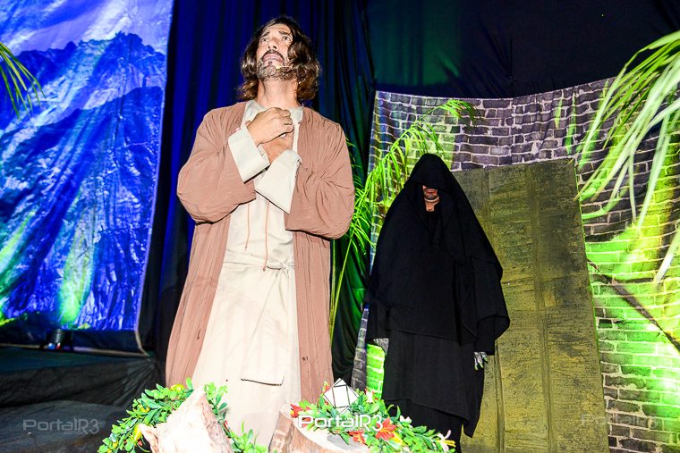 Encenação “Paixão de Cristo” na Ferroviária em Pindamonhangaba. [Foto: Allan Modesto | PortalR3]Na sexta-feira, 29 de março, mesmo em uma noite chuvosa em Pindamonhangaba, o ginásio da Associação Atlética Ferroviária ficou lotado para prestigiar a encenação da Paixão de Cristo, que também celebrou os 30 anos sob organização da Comunidade Aliança Jesus Agora (CAJA).