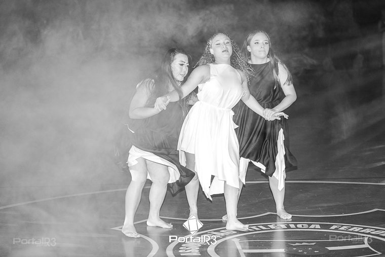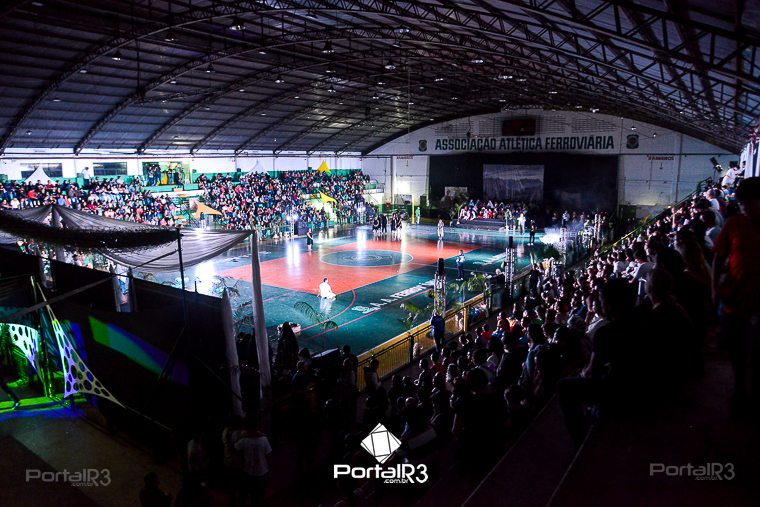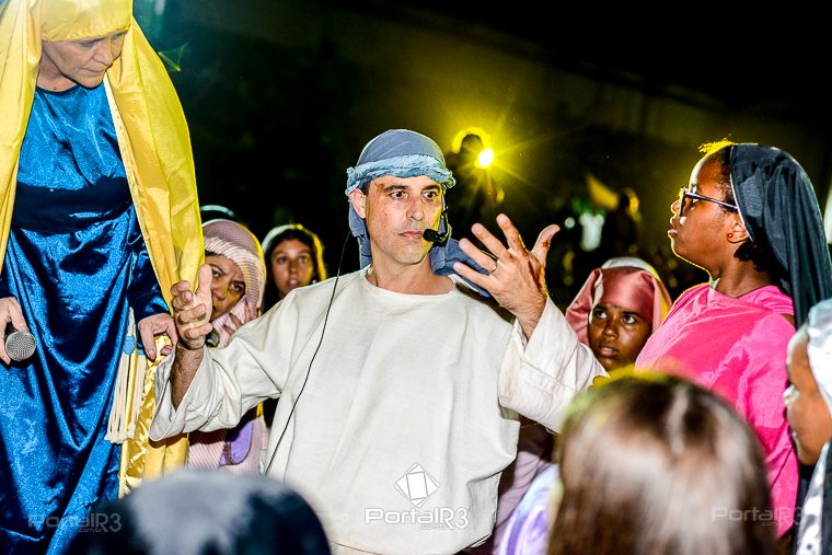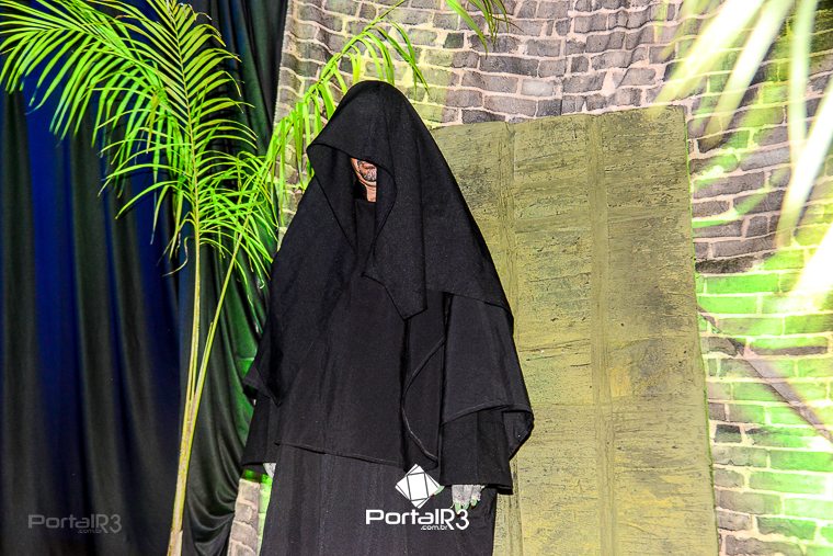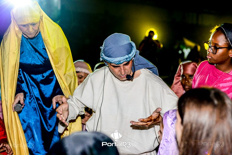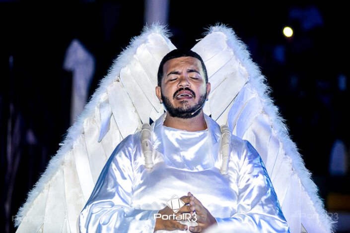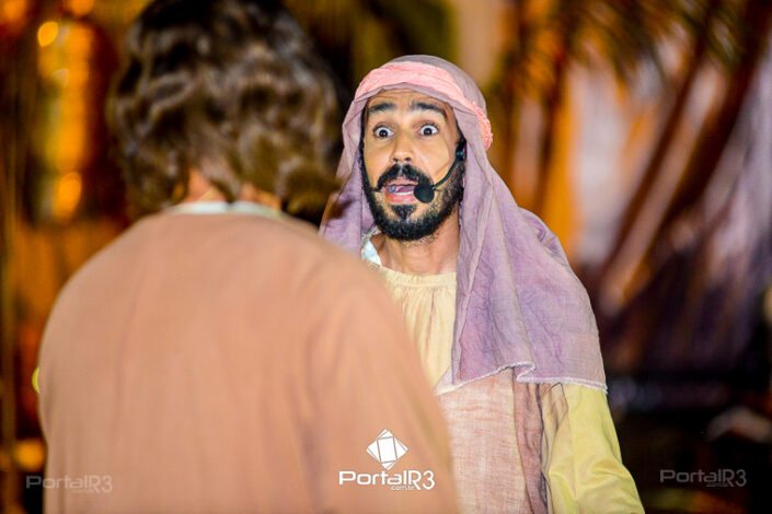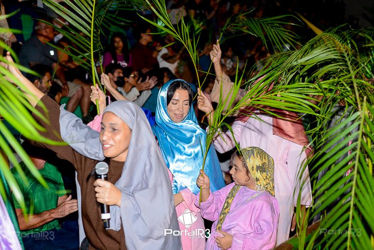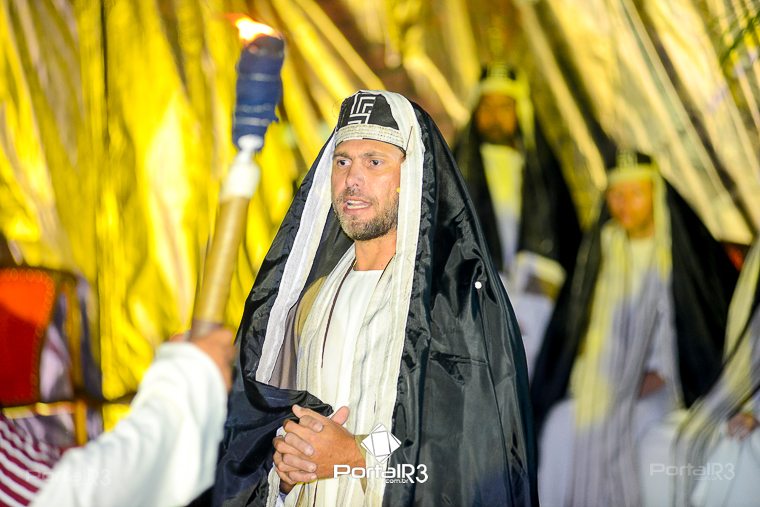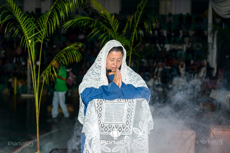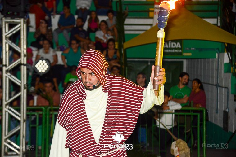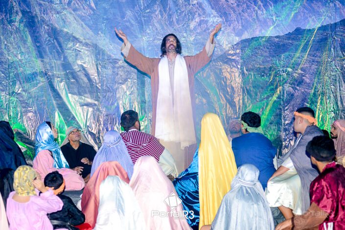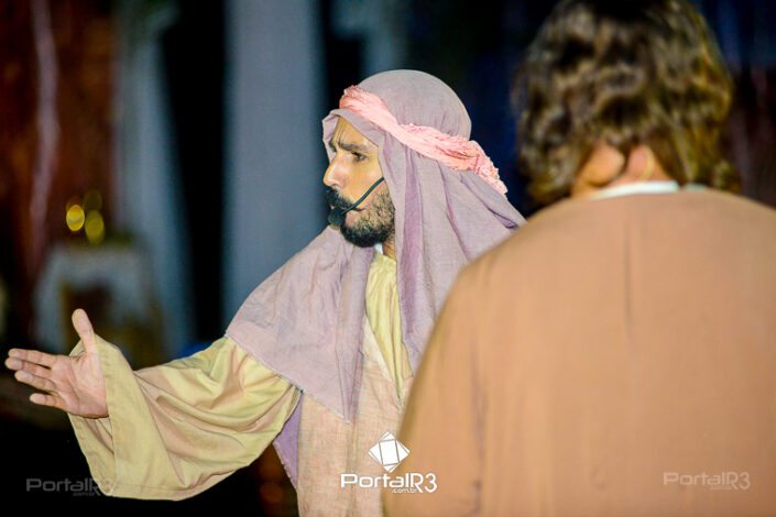 Encenação “Paixão de Cristo” na Ferroviária em Pindamonhangaba. [Foto: Allan Modesto | PortalR3]Na sexta-feira, 29 de março, mesmo em uma noite chuvosa em Pindamonhangaba, o ginásio da Associação Atlética Ferroviária ficou lotado para prestigiar a encenação da Paixão de Cristo, que também celebrou os 30 anos sob organização da Comunidade Aliança Jesus Agora (CAJA).