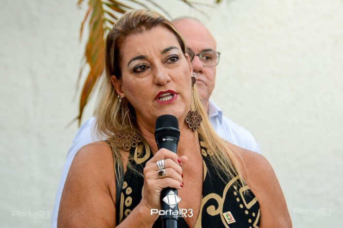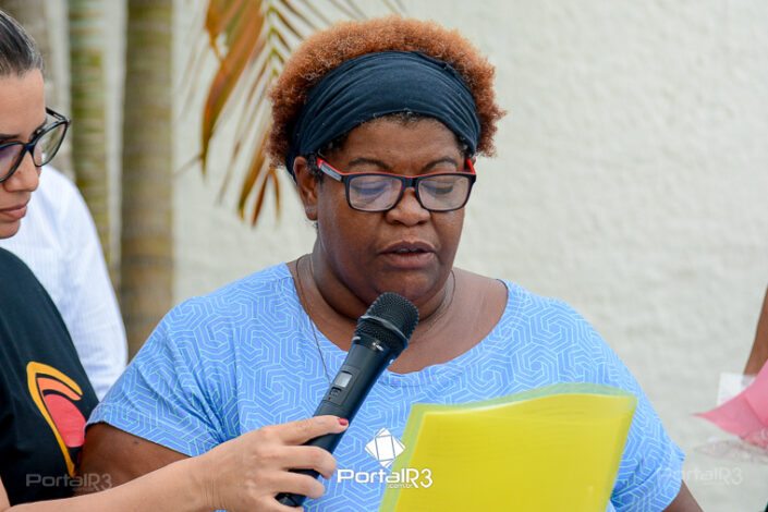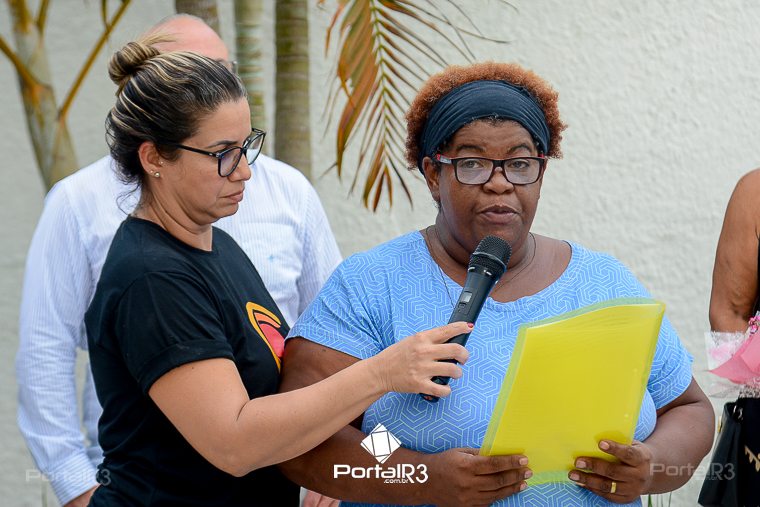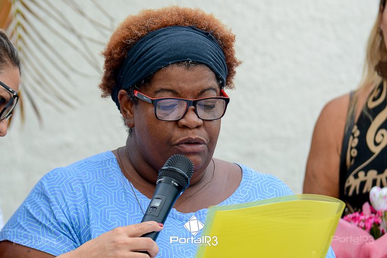 Professora Vera Lúcia Alcides de Oliveira, viúva do homenageado. [Foto: Allan Modesto | PortalR3]Patrono da Biblioteca