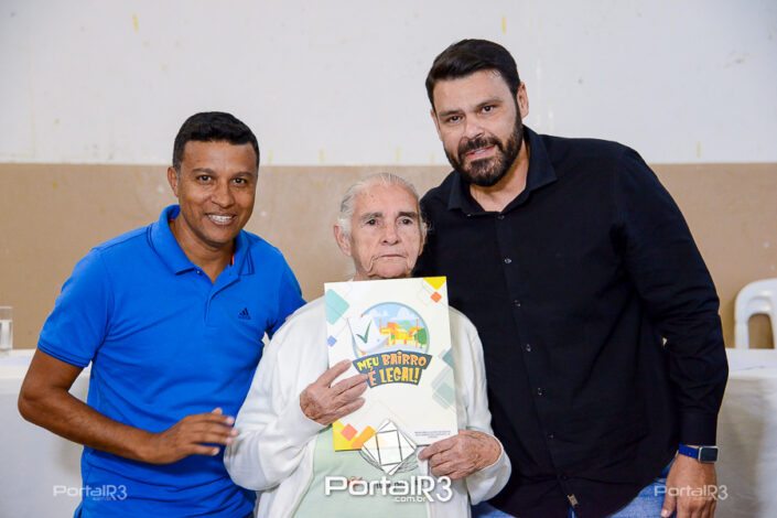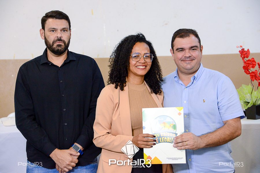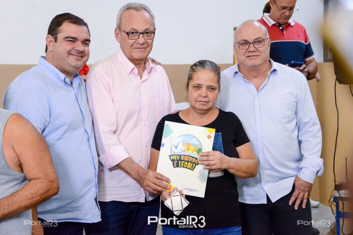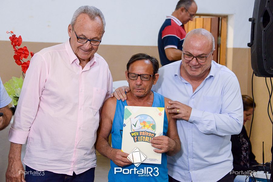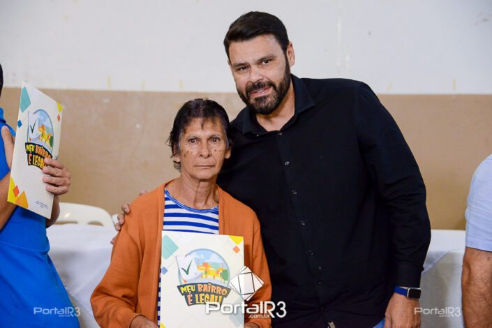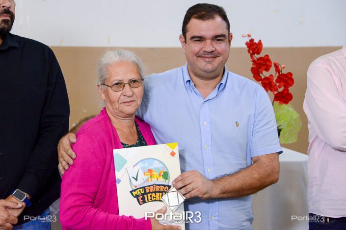 Entrega do contrato de doação para escritura Marieta Azeredo e Laerte Assumpção. [Foto: Allan Modesto | PortalR3]