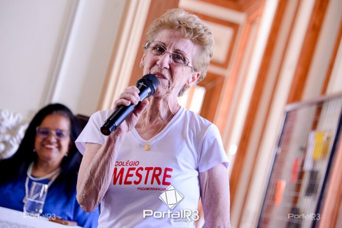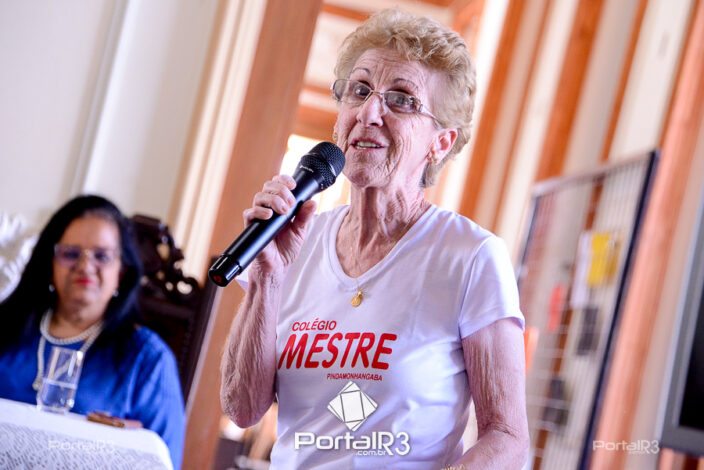 A professora Vânya Dulce D´Arace Maciel, proprietária do Colégio Mestre. [Foto: Allan Modesto | PortalR3]A professora Vânya Dulce D´Arace Maciel, proprietária do Colégio Mestre, falou em nome de todas as escolas homenageadas. “Solicitamos essas doações aos pais dos alunos e é falado para cada um deles, para onde vai, para quem que vai. Então nós estamos educando e doando. Minha escola hoje é a que menos alunos têm, então não seria possível a gente fazer essa caixa aqui sem a ajuda das ‘Mães à obra’, não posso deixar de elevar esse grupo. Tudo foi feito com muito amor. Quero agradecer, em nome de todos os colégios que participaram, e pedir que vocês continuem com campanhas tão bonitas como essa”, disse.