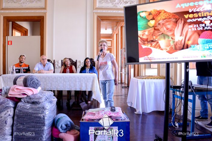 Primeira-dama Claudia Domingues. [Foto: Allan Modesto | PortalR3]A idealizadora das campanhas, presidente do Fundo Social de Solidariedade, primeira-dama Claudia Domingues, ficou muito feliz com o resultado final. “Eu quero agradecer de coração, é muito importante esse gesto que vocês fizeram com os alunos. Agradeço também aos meus colegas servidores, que fizeram de tudo para me ajudar, e todo mundo ali comigo ajudando, se doando, alegria de servir. Graças a Deus todo mundo entendeu o espírito da ação. Nós já estamos distribuindo as roupas arrecadadas, no Bem Viver e Castolira. Então, à medida que a roupa vai chegando, nós já estamos doando. Porque o frio é de repente e precisamos estar preparados. E agora os cobertores também vão ser de boa ajuda. Outra coisa também, os animais. Estamos recebendo ainda ração, roupinhas de pet. Eu fiquei impressionada que a população entendeu mesmo essa nossa nova causa, que é ajudar os animais, eles também sentem frio, têm fome e a gente precisa ajudá-los também. Estou muito contente com a nossa campanha, muito contente com a população de Pindamonhangaba, que sempre nos ajudou e entende o nosso propósito. Muito obrigada a todos vocês, de coração mesmo”, agradeceu.