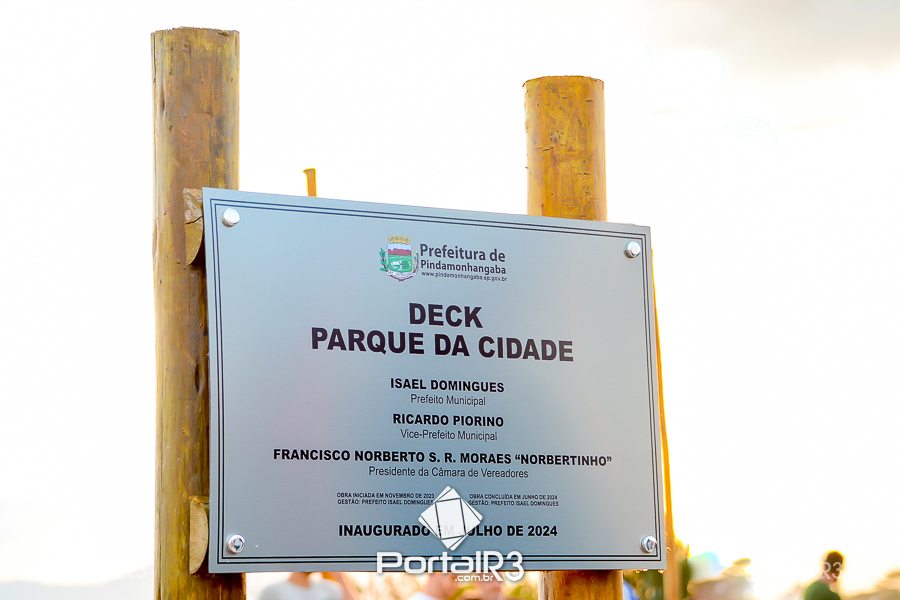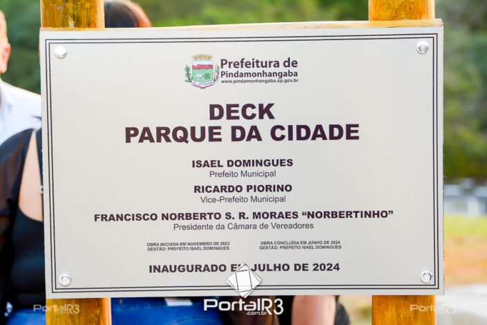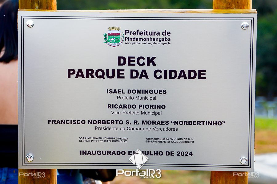 Inauguração do Deck no Parque da Cidade em Pinda. [Foto: Sérgio Ribeiro | PortalR3]A Prefeitura de Pindamonhangaba realizou, na fim da tarde da quarta-feira (3), a inauguração do Deck do Parque da Cidade. O Deck fica próximo aos galpões onde são realizadas a Feira do Produtor Rural e as oficinas de carpintaria e marcenaria do Reinvente. Veja o vídeo que preparamos do local. .
