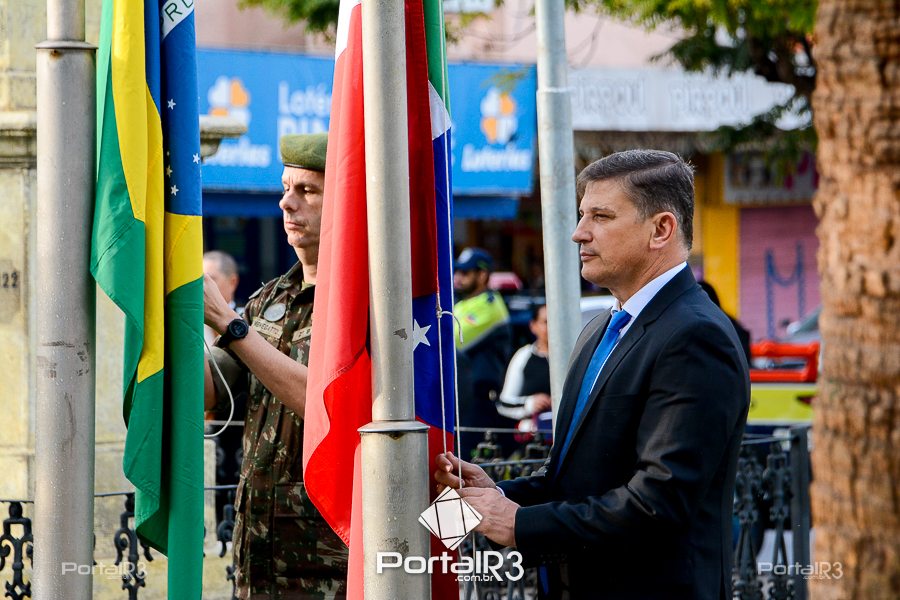 Hasteamento de bandeiras celebra os 319 anos de Pindamonhangaba. [Foto: Allan Modesto | PortalR3]