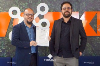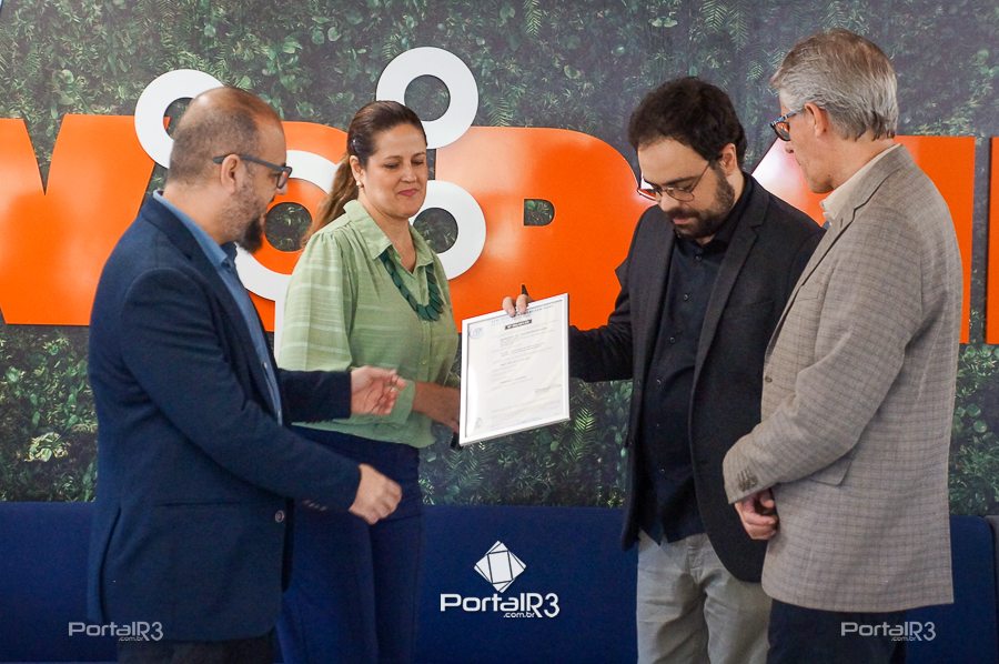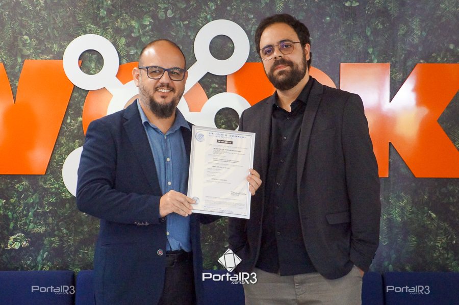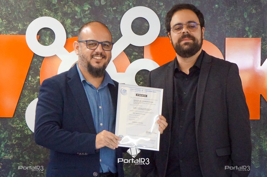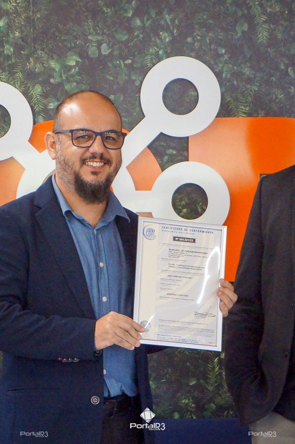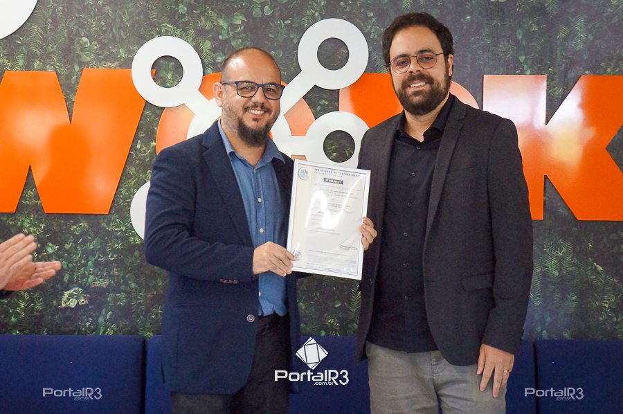 Secretário de tecnologia, Inovação e Projeto – Danilo Velloso, recebeu a placa das mãos do representante da ABNT. (Foto: Claudio Antunes/PortalR3)