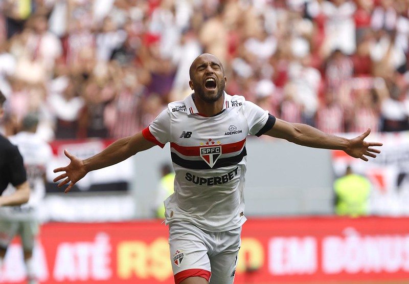 Lucas, nos acréscimos do primeiro tempo, abriu o placar para o São Paulo. O camisa 7 balançou as redes cobrando pênalti sofrido por Calleri, se redimindo do erro da marca da cal no meio de semana que custou a eliminação tricolor das quartas de final da Libertadores.