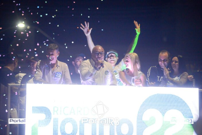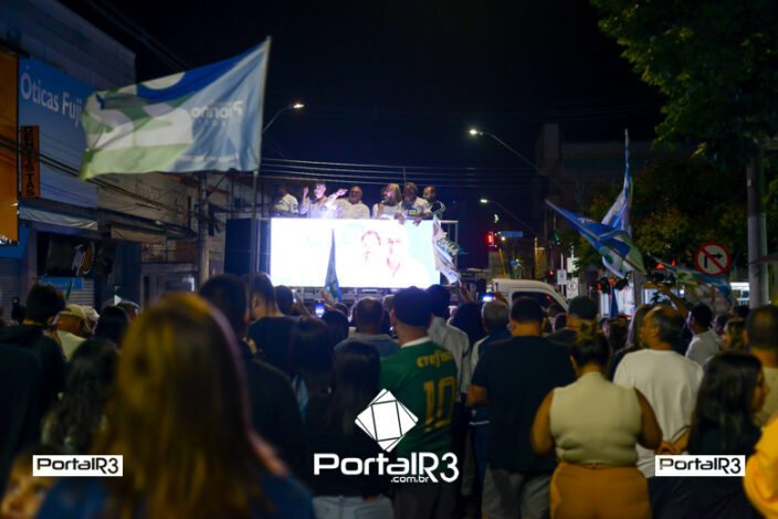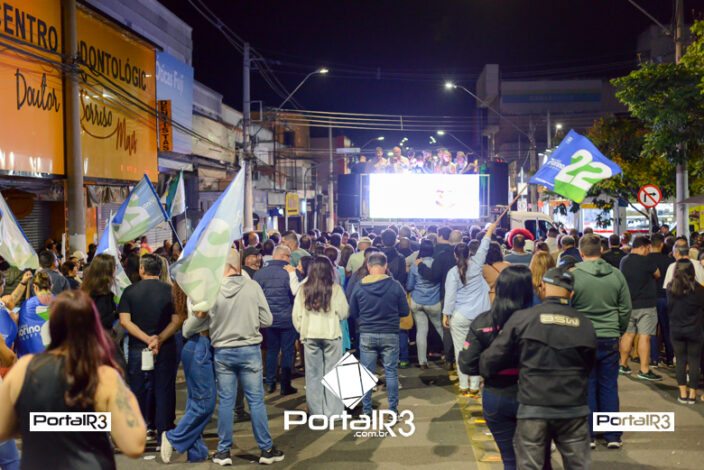 Festa da vitória na Praça Monsenhor Marcondes. [Foto: Allan Modesto | PortalR3]Galeria com fotos da votação dos candidatos a prefeito em Pindamonhangaba nas Eleições de 2024 e também da comemoração do candidato eleito Ricardo Piorino.