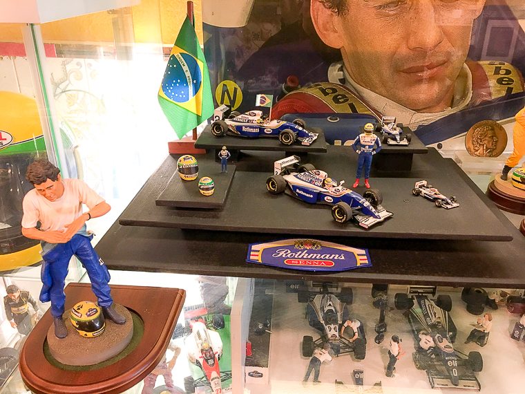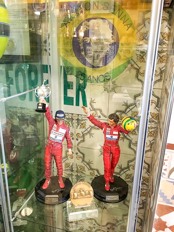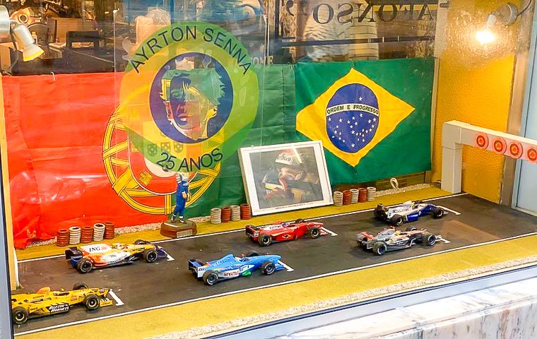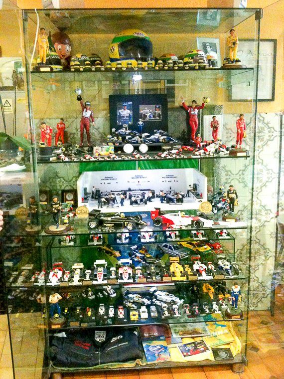 Enquanto espera pela sua francesinha, feita com muito amor e requinte – no “O Afonso” aguarda sempre uns bons 15 minutos para que fique no ponto – vai comendo uns amendoins e umas tostas com manteiga. Mas o que deve fazer mesmo, por ser imperdível, é apreciar o espetacular mini museu (ver vídeo) dedicado a Ayrton Senna, por muitos considerado o maior piloto da história da Fórmula 1 de todos os tempos. Mesmo antes do seu falecimento no dia 1 de maio de 1994, aos 34 anos, no trágico acidente no Circuito de Ímola, em Itália, já Miguel Afonso venerava o seu ídolo, tendo inclusivamente assistido a várias corridas. Desde então, apesar da sua dor, transformou o estabelecimento num lugar quase sagrado, entre quadros e pequenas e grandes peças, um vasto património de inesgotável beleza.